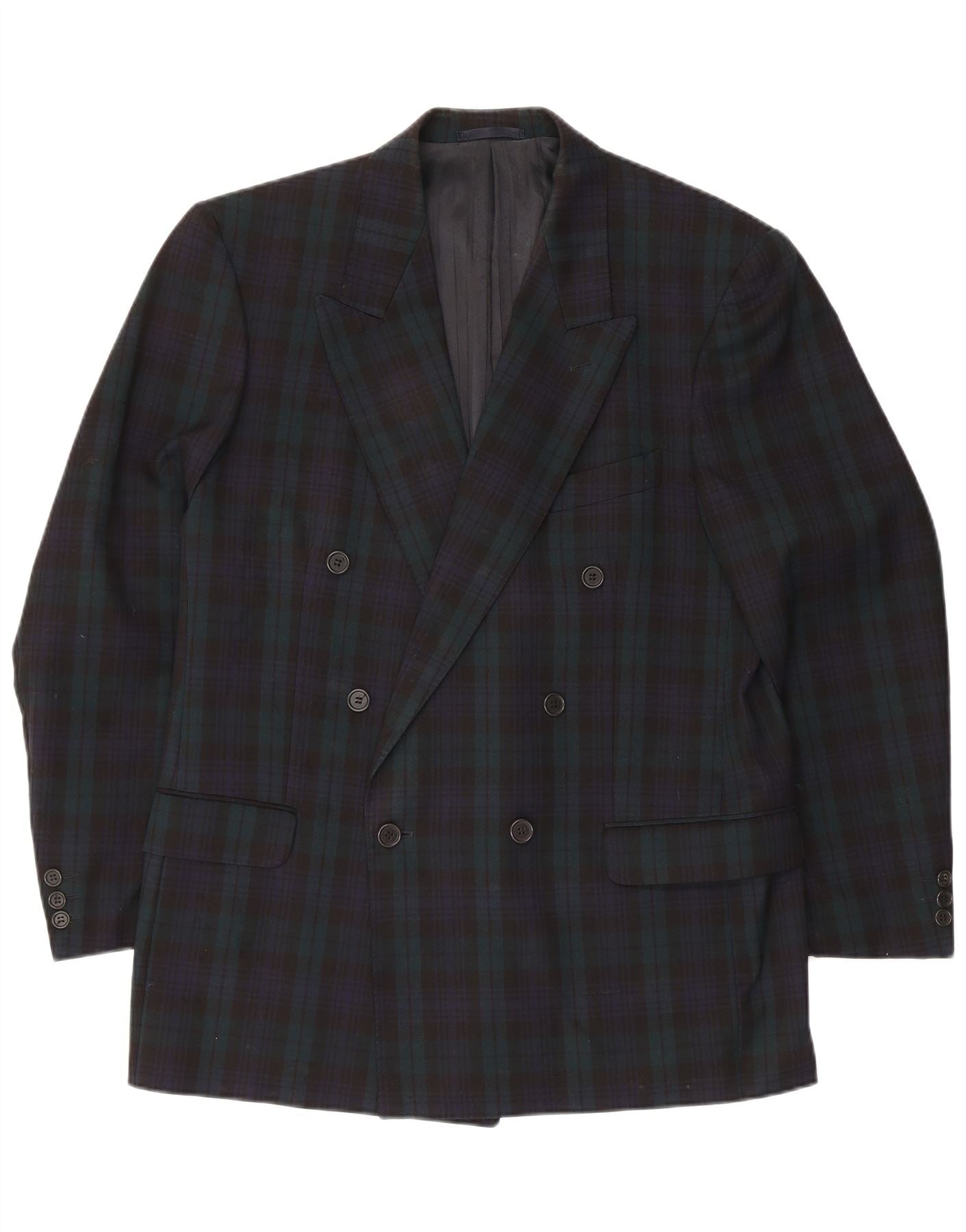 Jaqueta blazer masculina Jaeger com peito duplo IT 52 XL azul marinho xadrez lã