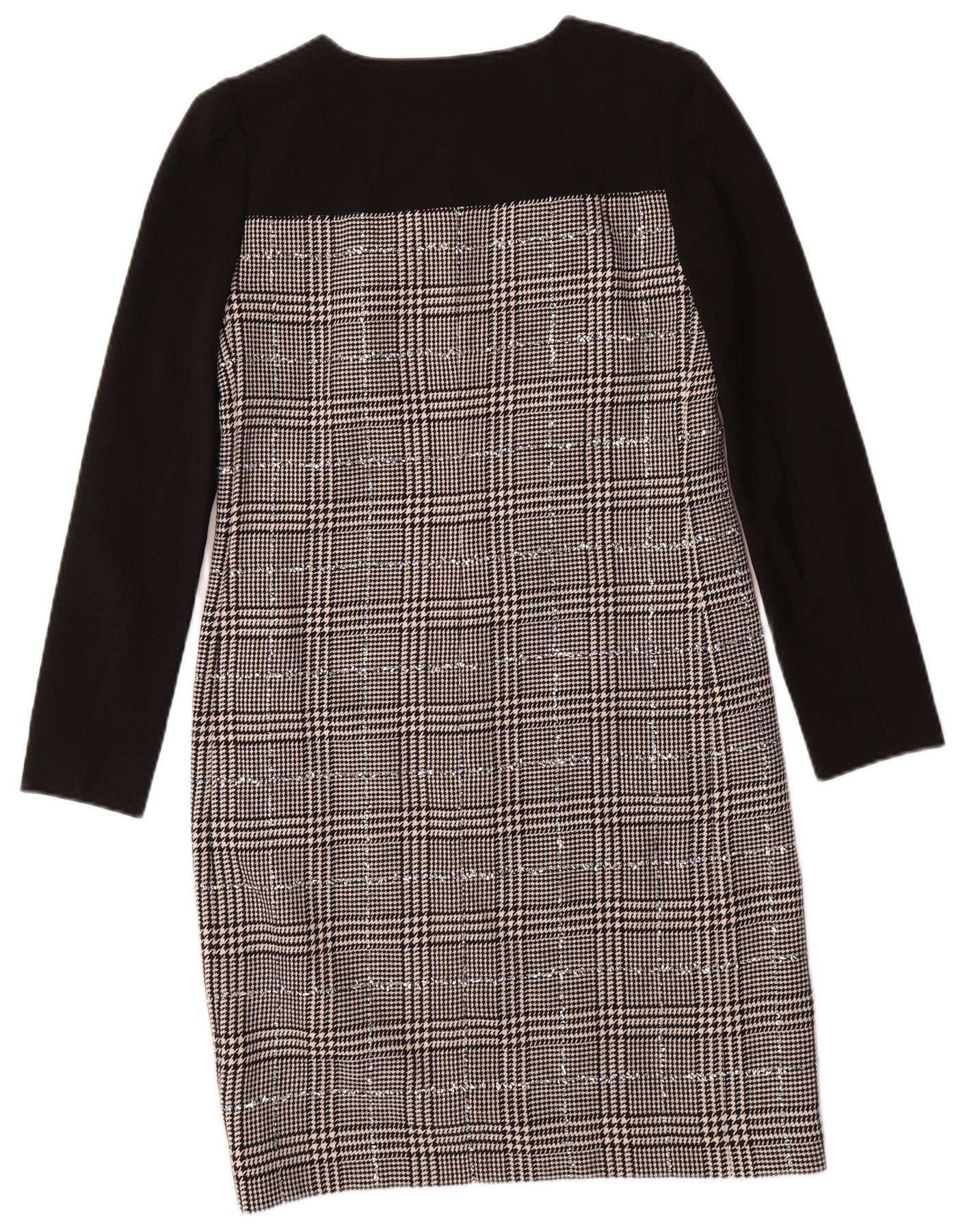 Vestido feminino JAEGER com bainha de manga comprida Reino Unido 8 pequeno preto de lã houndstooth