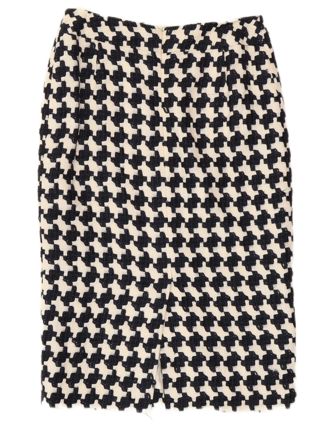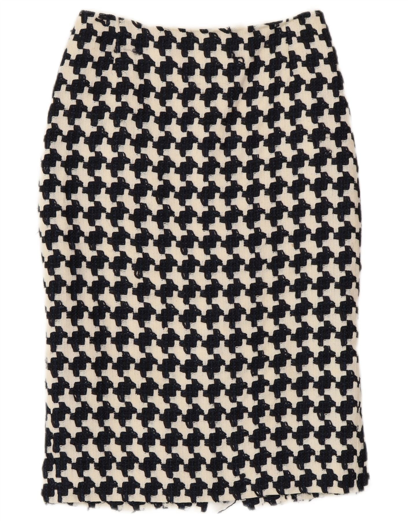 Saia lápis feminina JAEGER Reino Unido 8 pequena W27 algodão houndstooth preto