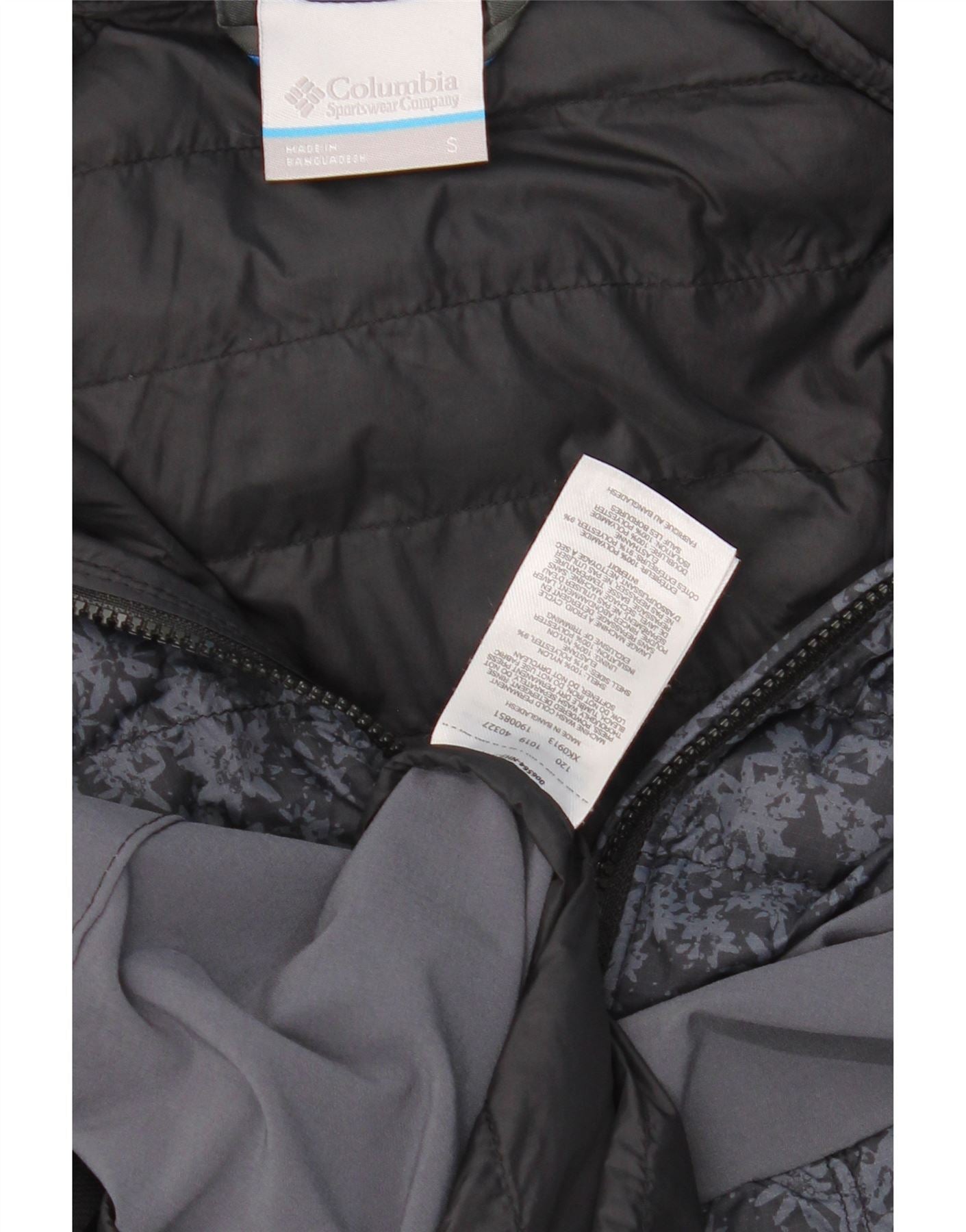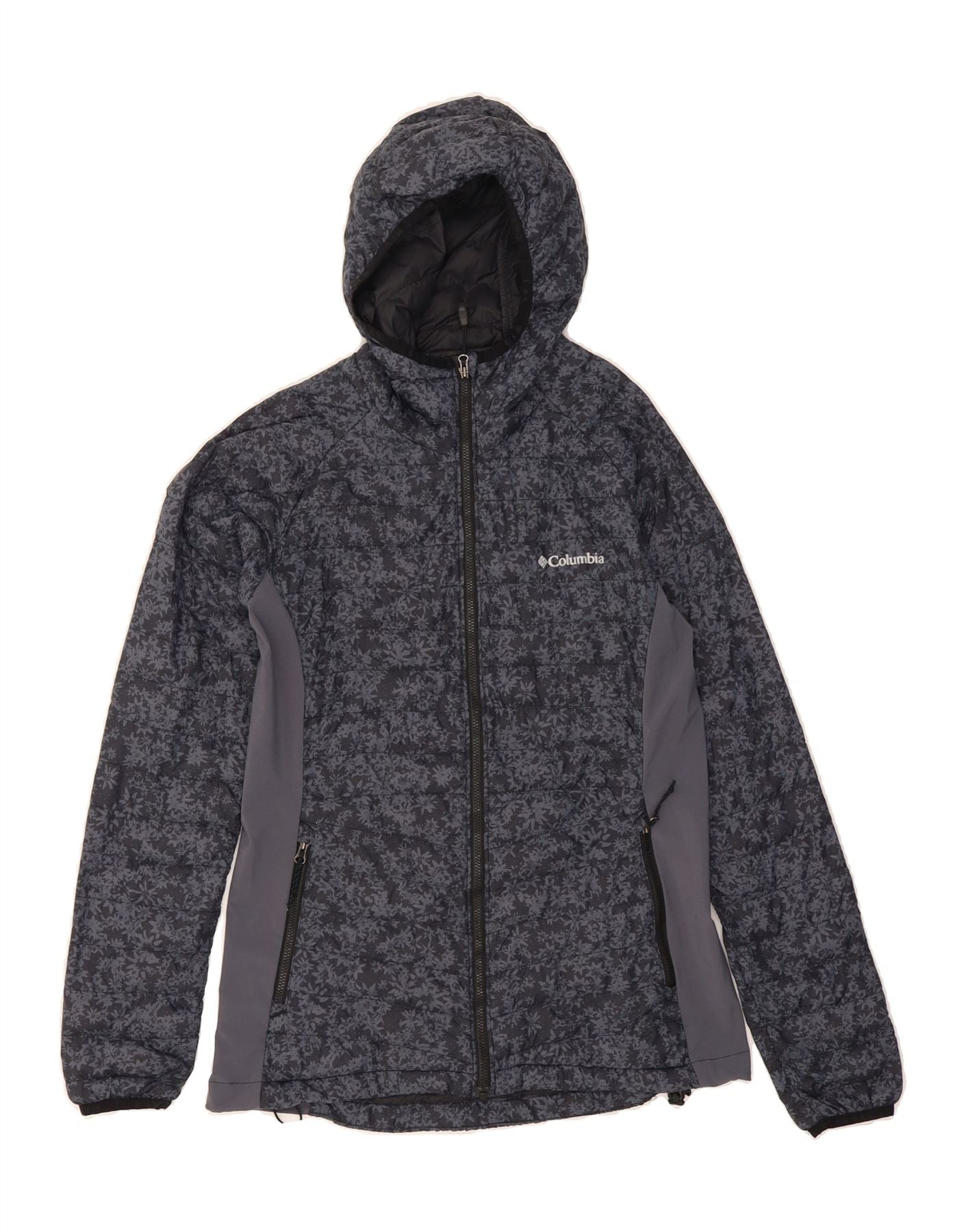 Jaqueta acolchoada com capuz feminina COLUMBIA UK 10 poliéster floral cinza pequeno