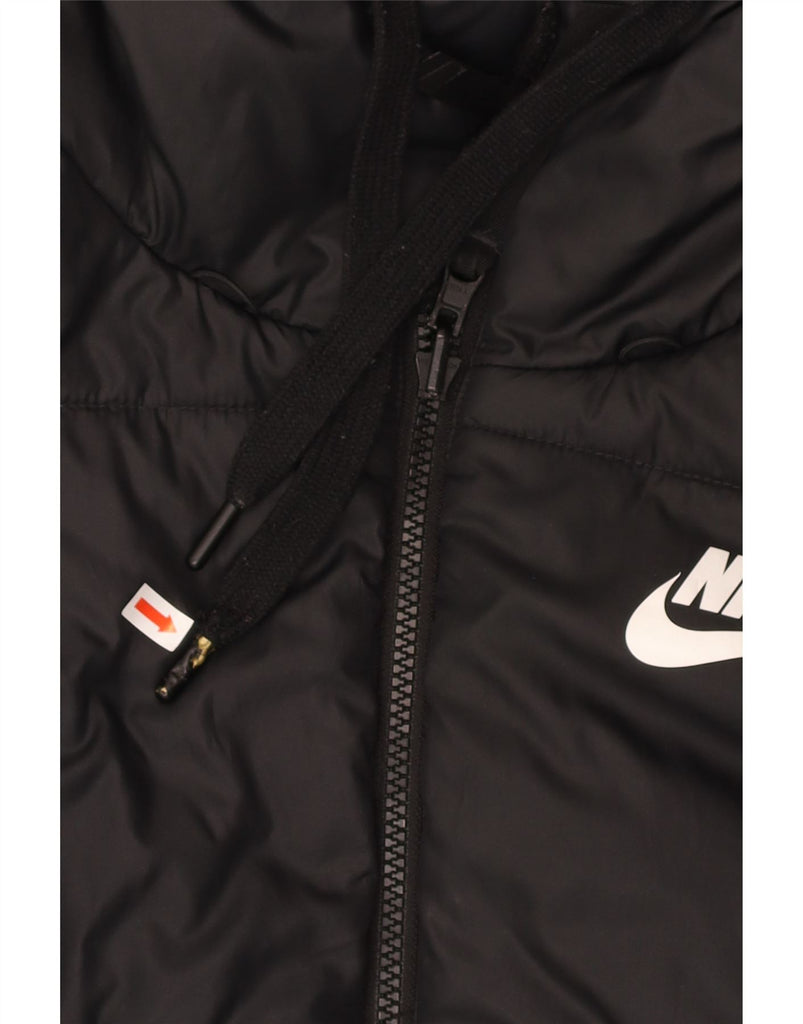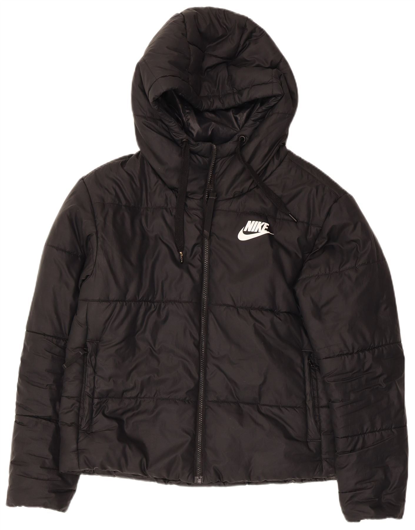- Descrição da IA: Esta jaqueta acolchoada feminina da Nike é confeccionada em tecido leve, oferecendo uma textura macia e acolchoada. Possui gola alta e fecho de correr completo para aquecer. As mangas compridas e o ajuste regular garantem um uso confortável. Um prático capuz oferece proteção extra. A marca sutil com um logotipo adiciona um toque atlético exclusivo. Esta jaqueta preta é ideal para camadas esportivas ou casuais, combinando funcionalidade com um design elegante.