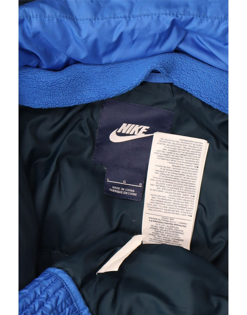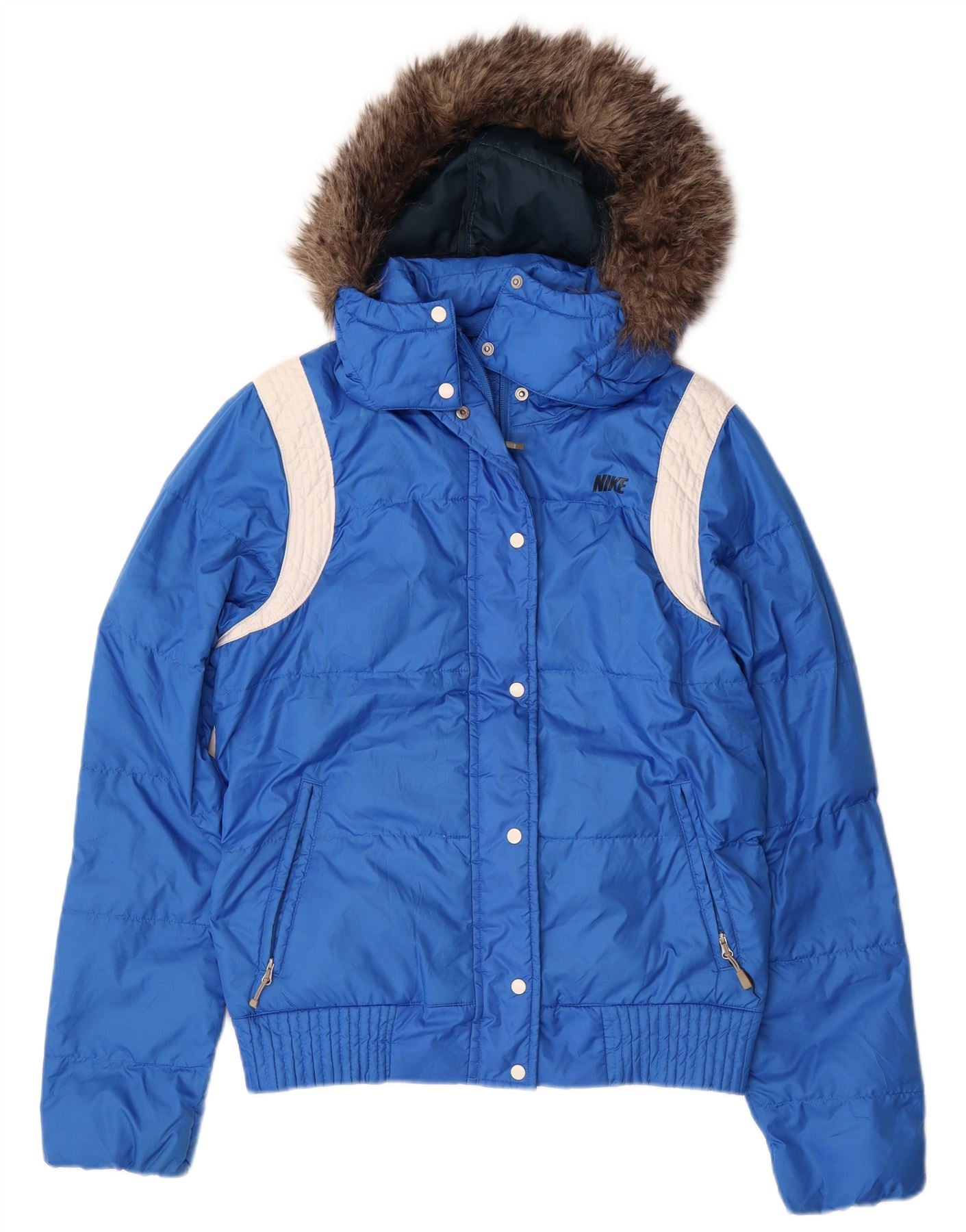 Jaqueta acolchoada com capuz feminina NIKE UK 16 grande azul colorblock poliéster