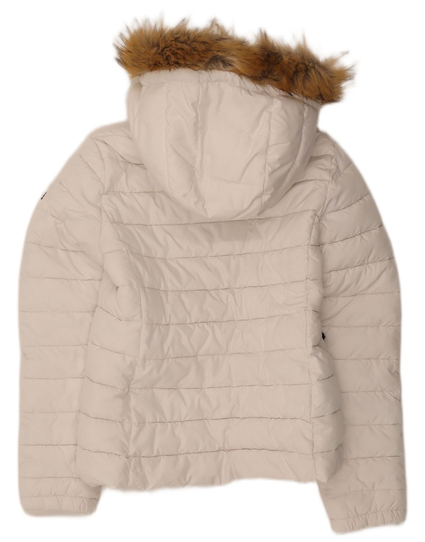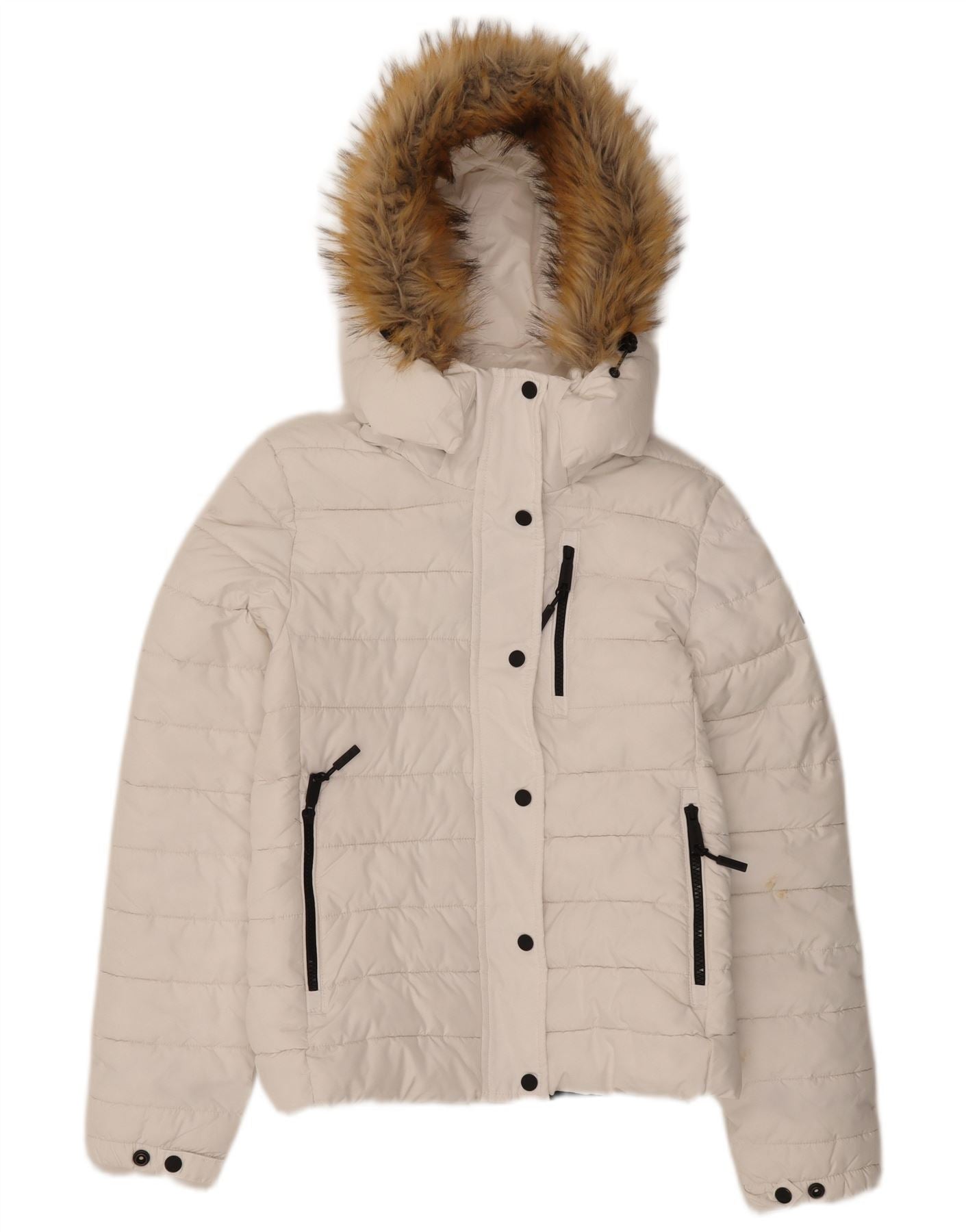Jaqueta acolchoada com capuz feminina SUPERDRY UK 10 poliéster branco pequeno