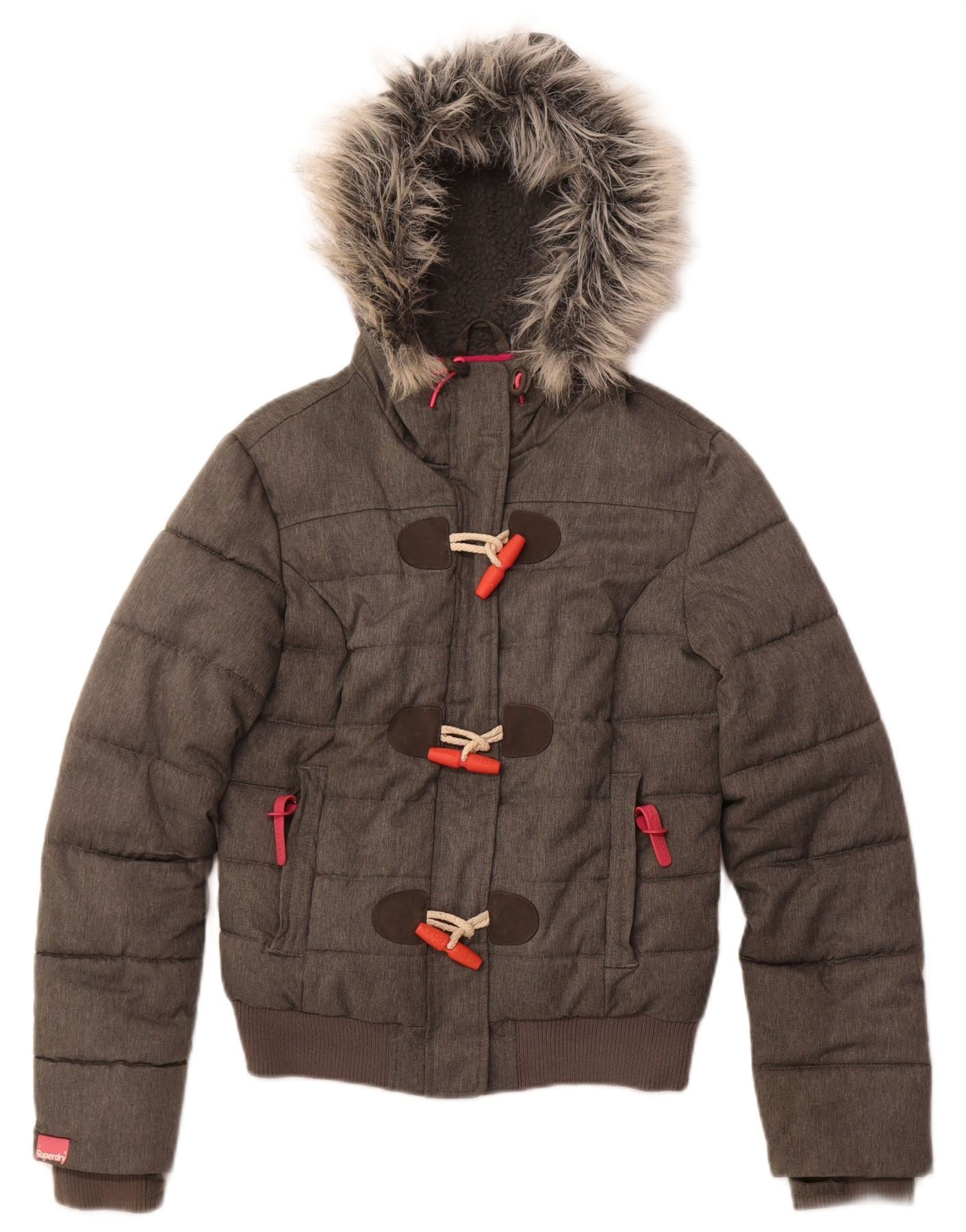 Jaqueta acolchoada com capuz feminina SUPERDRY UK 10 poliéster cinza pequeno