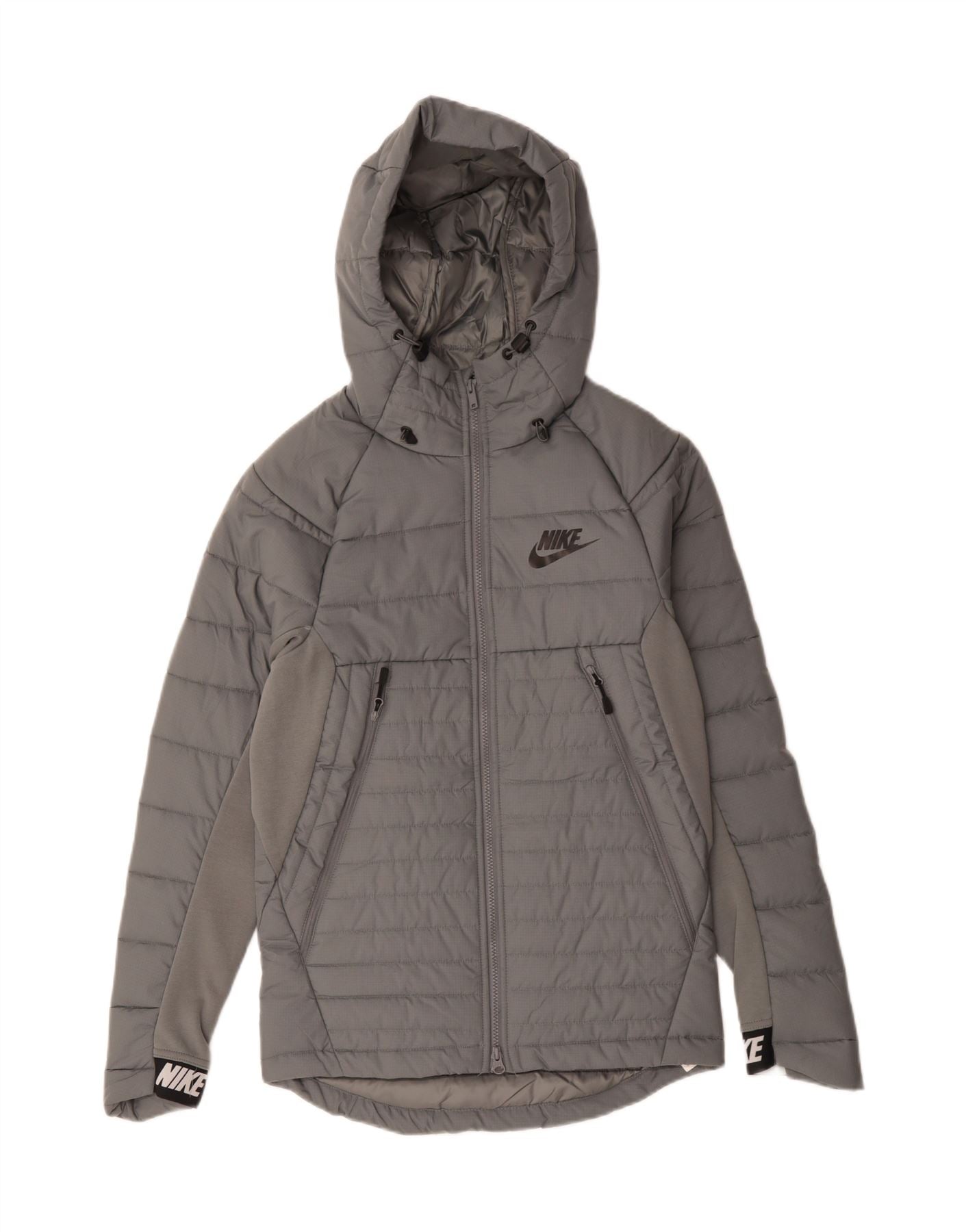 Jaqueta acolchoada com capuz gráfico feminino NIKE UK 6 XS cinza algodão