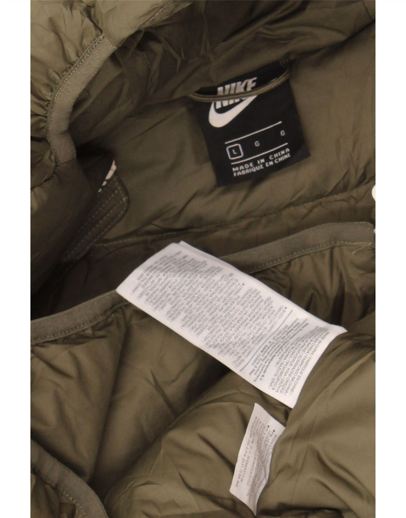 Jaqueta acolchoada com capuz masculina NIKE UK 40 grande poliéster cáqui