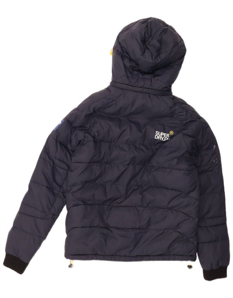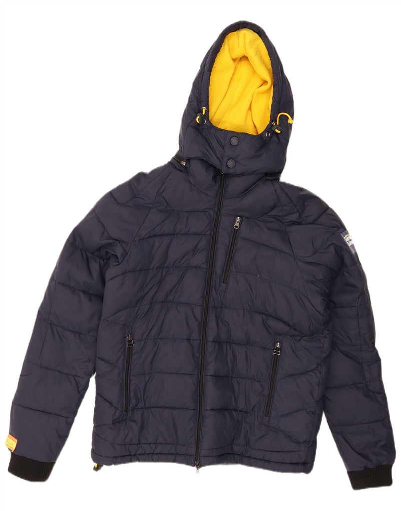 Jaqueta acolchoada com capuz masculina SUPERDRY UK 40 grande poliéster azul marinho