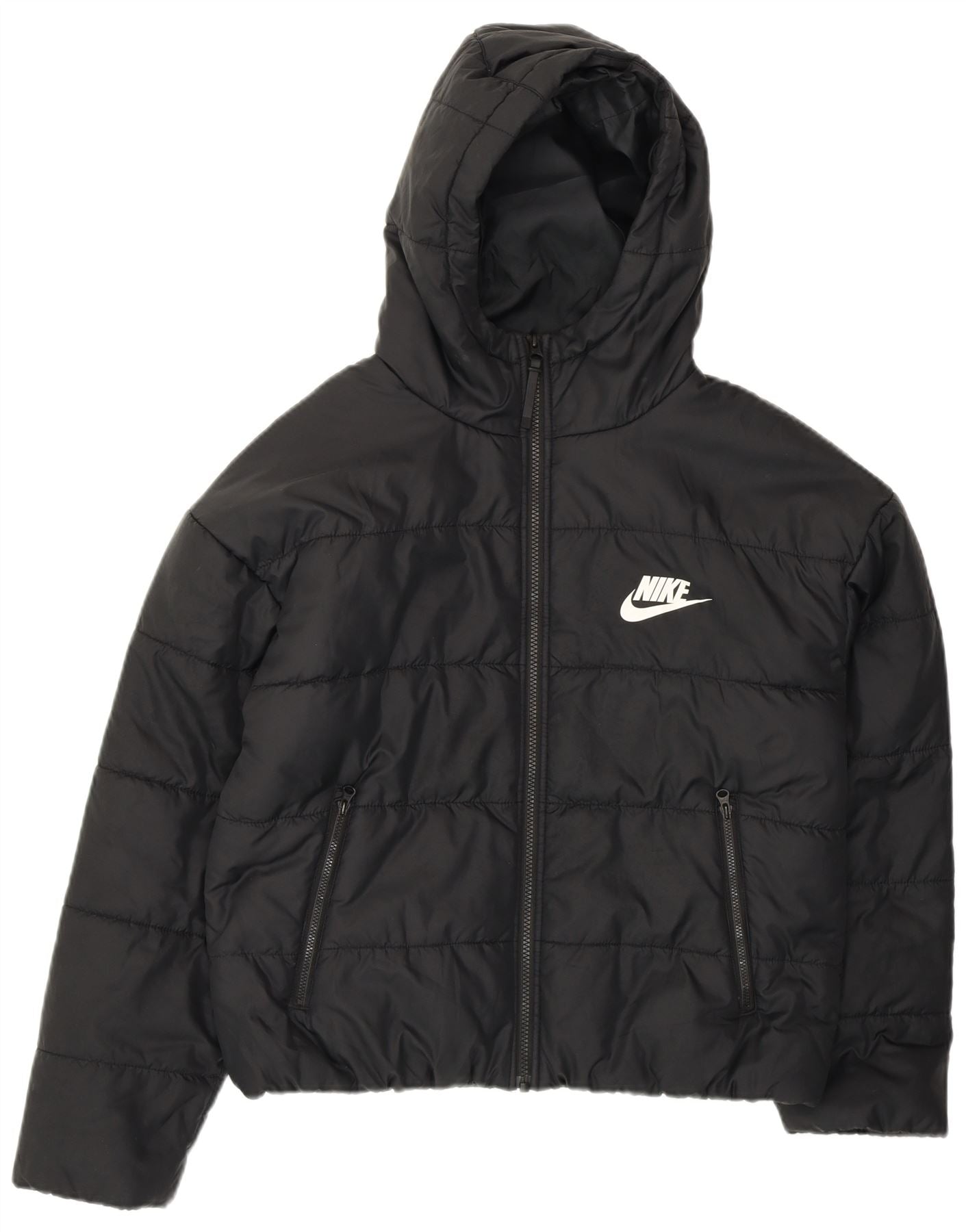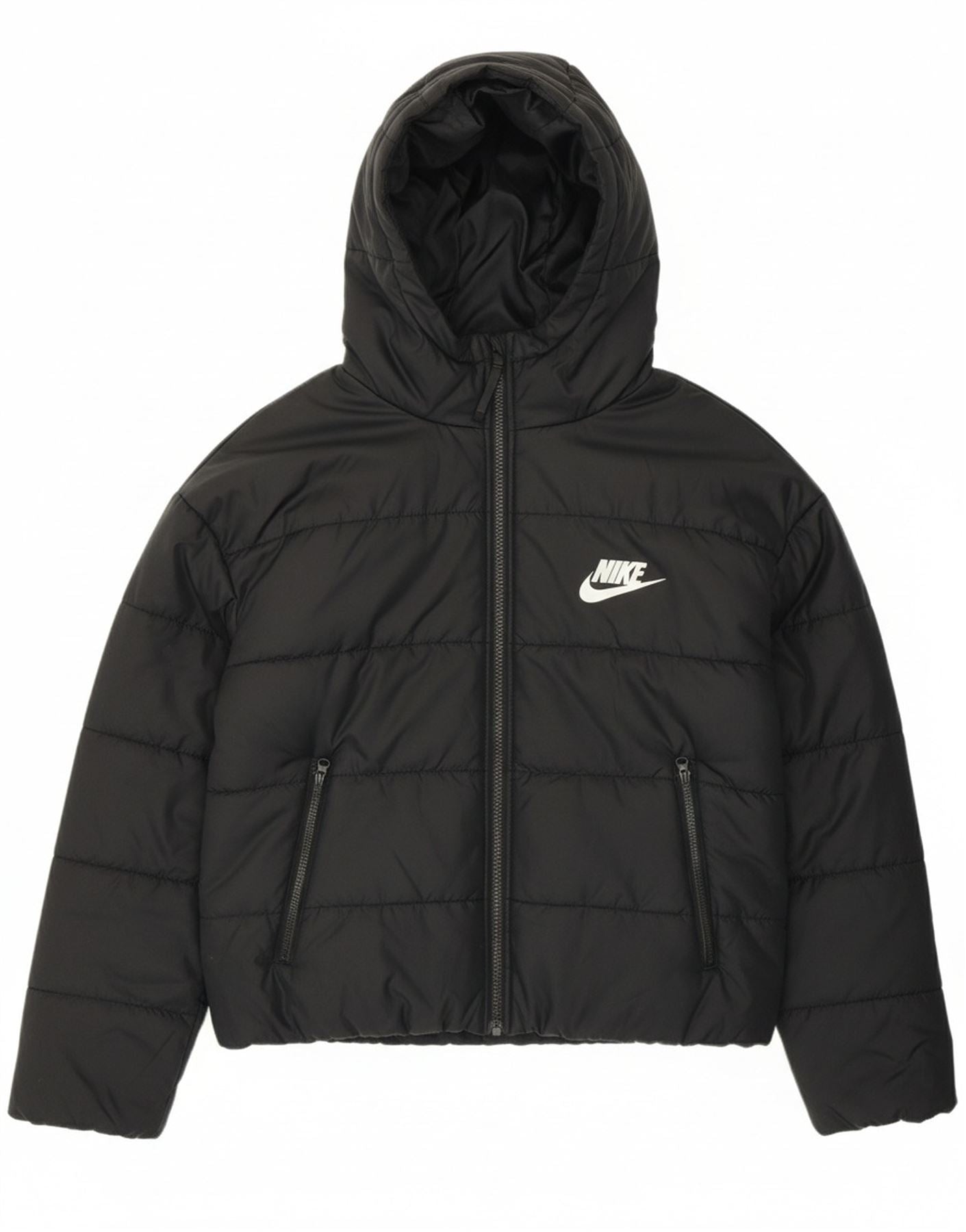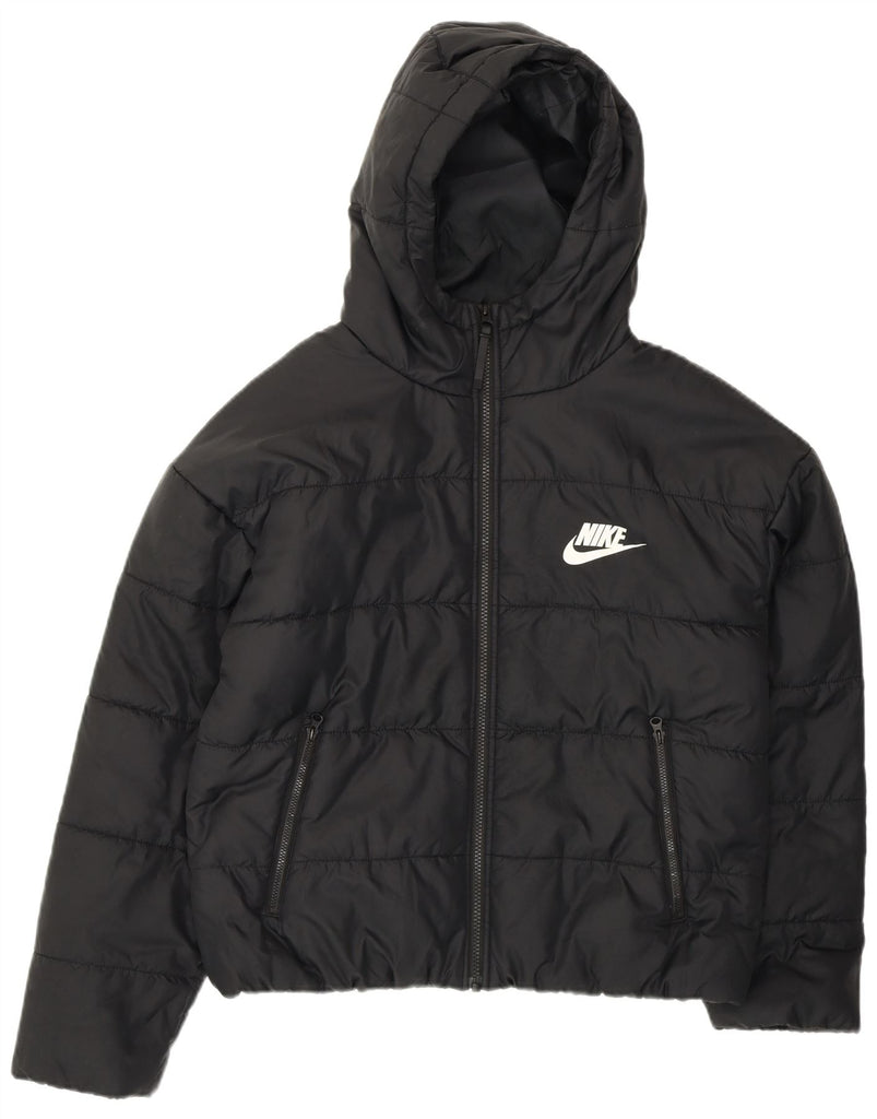 Jaqueta acolchoada feminina com capuz gráfico grande da NIKE Reino Unido 10 pequena preta