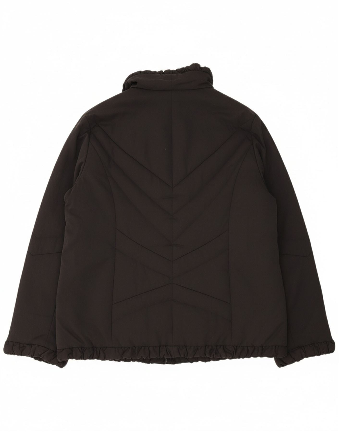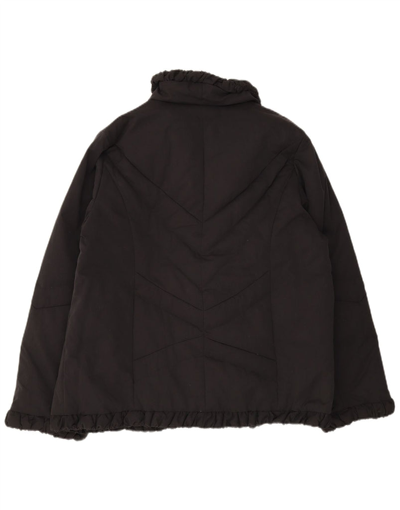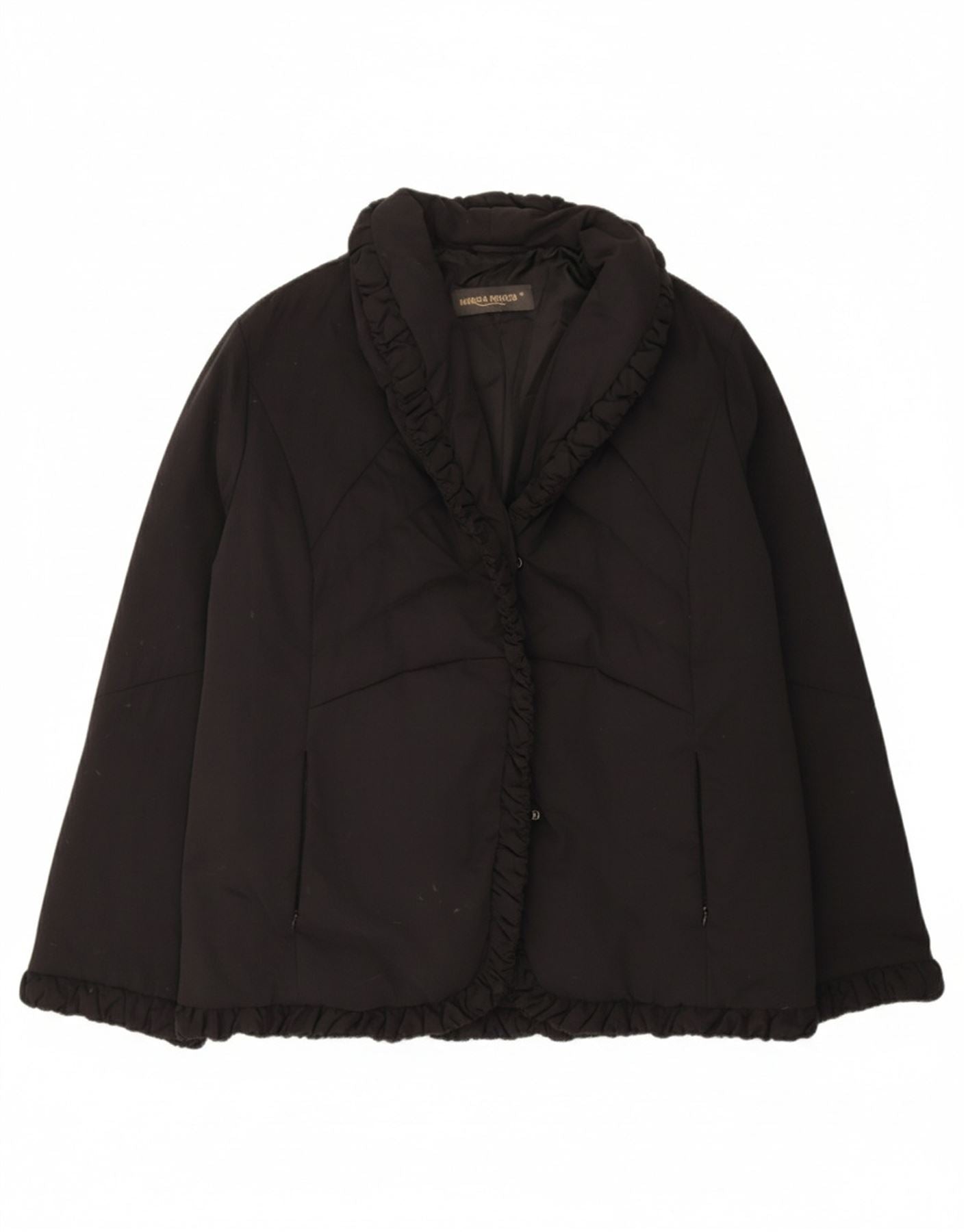 - Descrição da IA: Esta jaqueta acolchoada feminina Marina Rinaldi é apresentada em um rico tecido preto com acabamento acolchoado. Seu design térmico e pesado oferece excelente calor e proteção à prova de vento. O decote com gola e as mangas compridas proporcionam uma silhueta clássica. Possui um ajuste regular com cintura ajustável para um formato personalizado. Fechos de pressão protegem a frente, enquanto bolsos práticos estão incluídos. Os detalhes de babados adicionam um toque refinado a esta peça de roupa totalmente forrada.