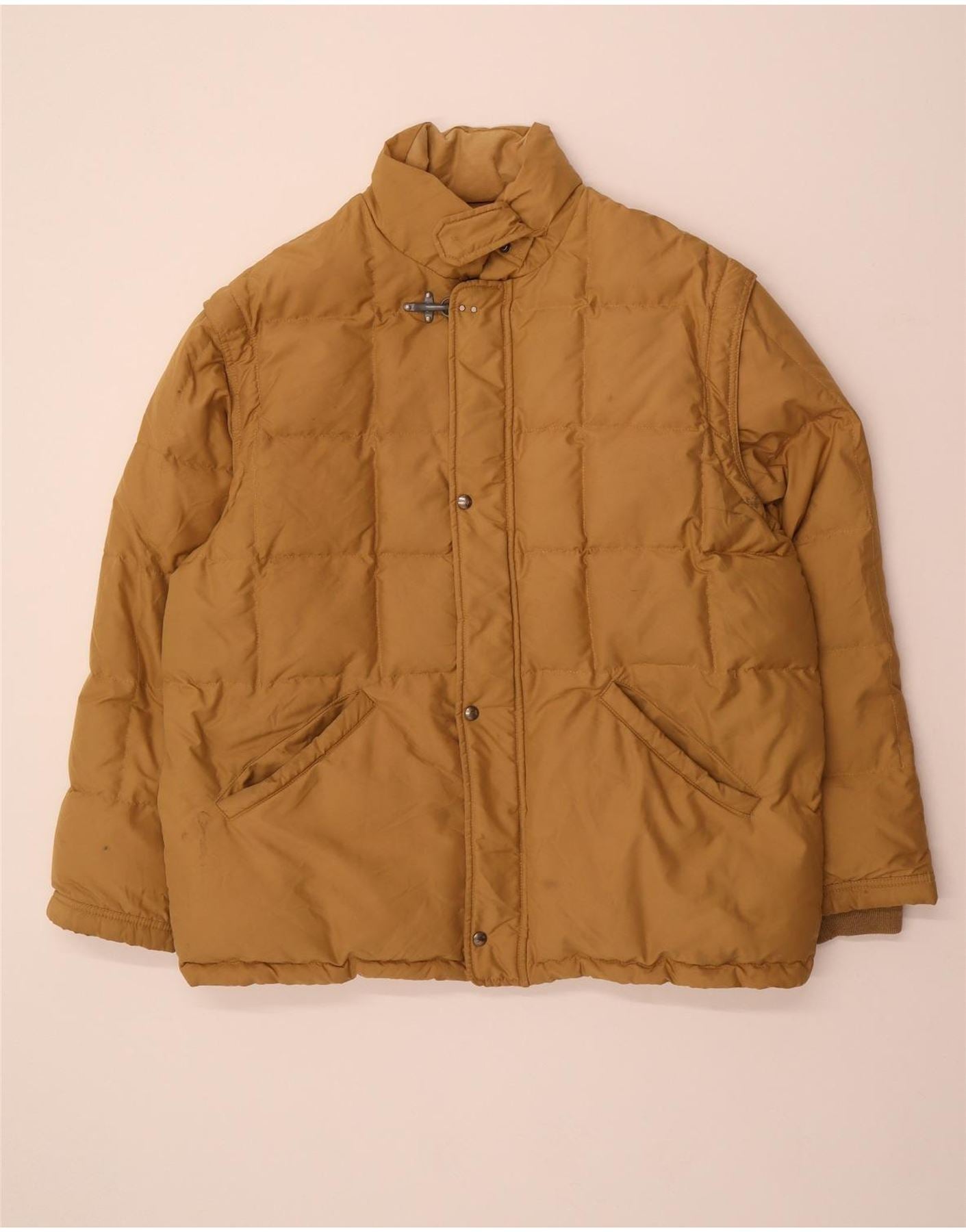 Jaqueta blazer feminina vintage manga 3/4 2 botões Reino Unido 16 grande viscose bege
