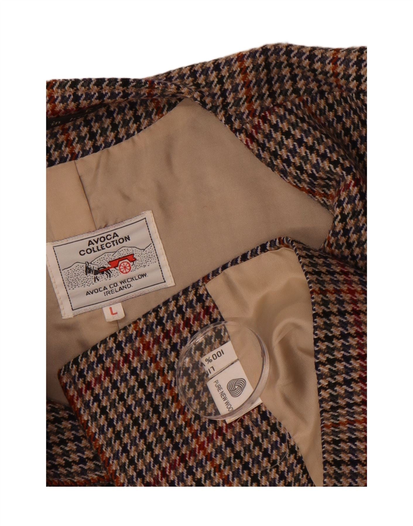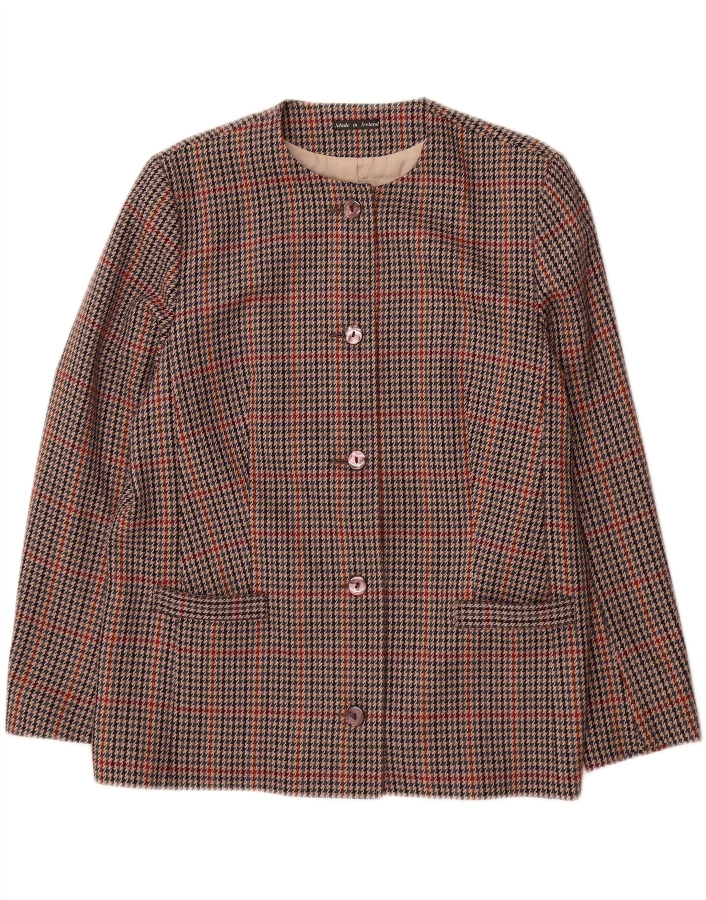 Jaqueta blazer feminina AVOCA com 5 botões Reino Unido 16 grande marrom houndstooth lã nova
