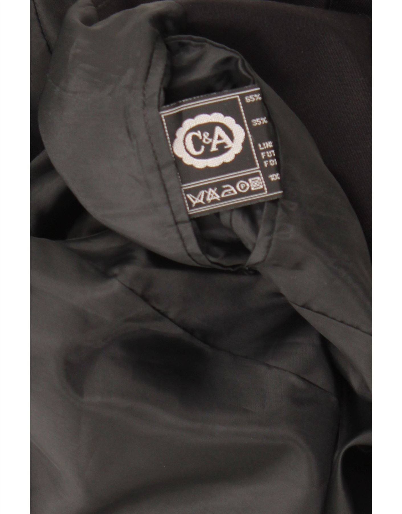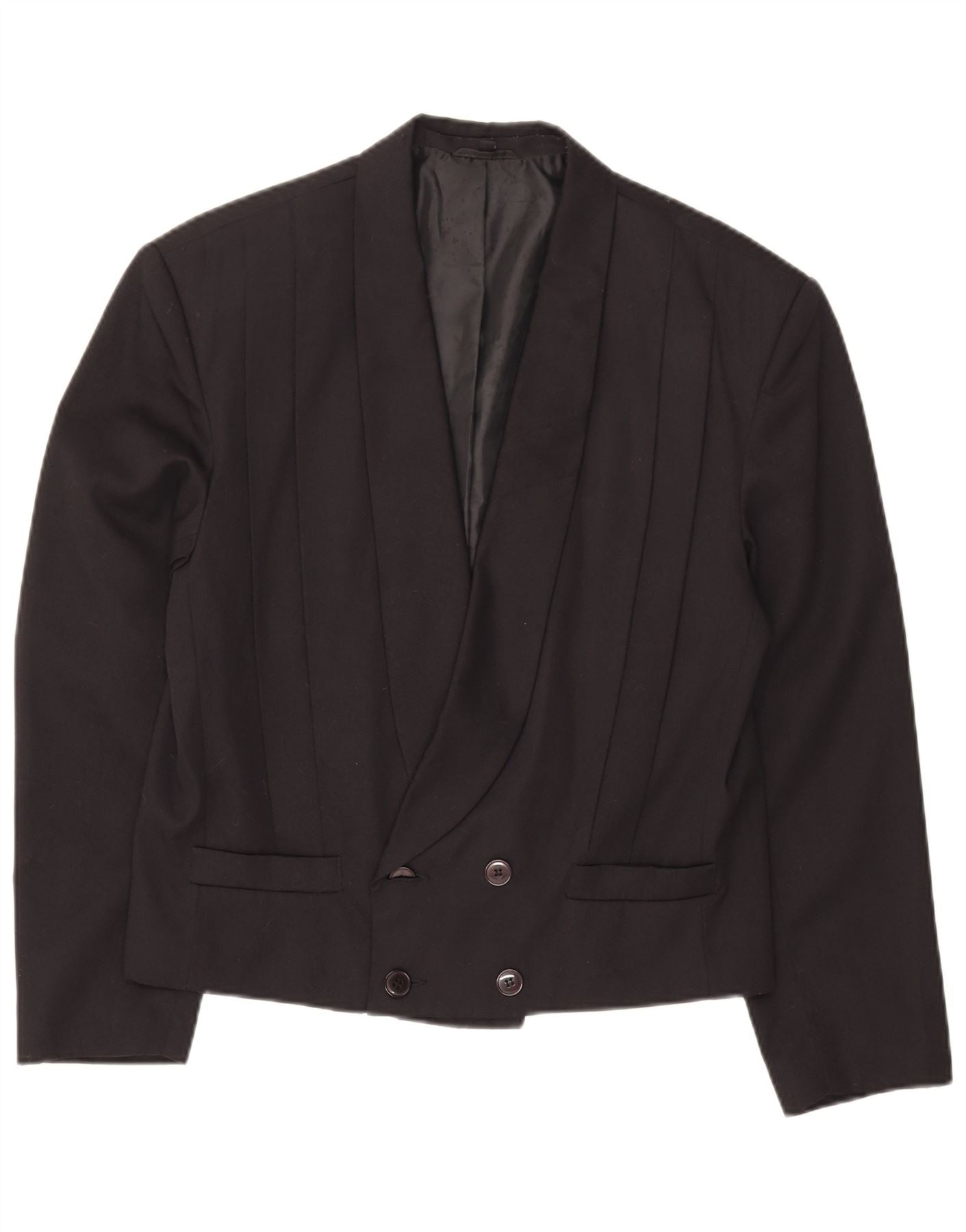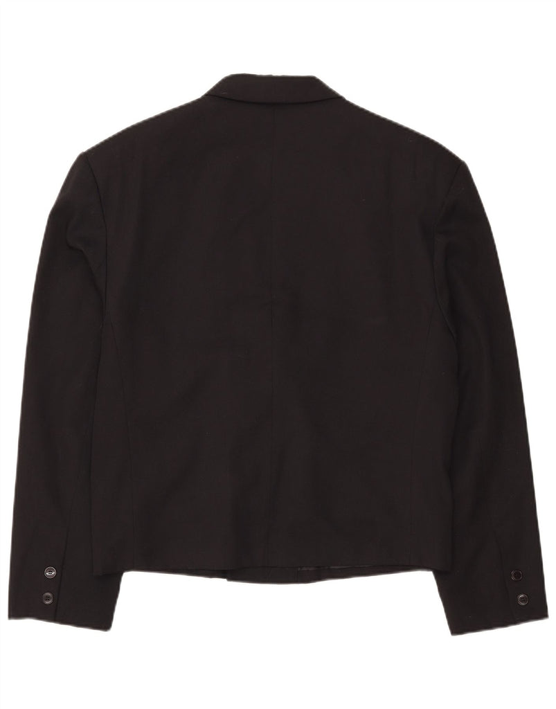 Jaqueta blazer feminina C&A com peito duplo Reino Unido 14 poliéster preto médio