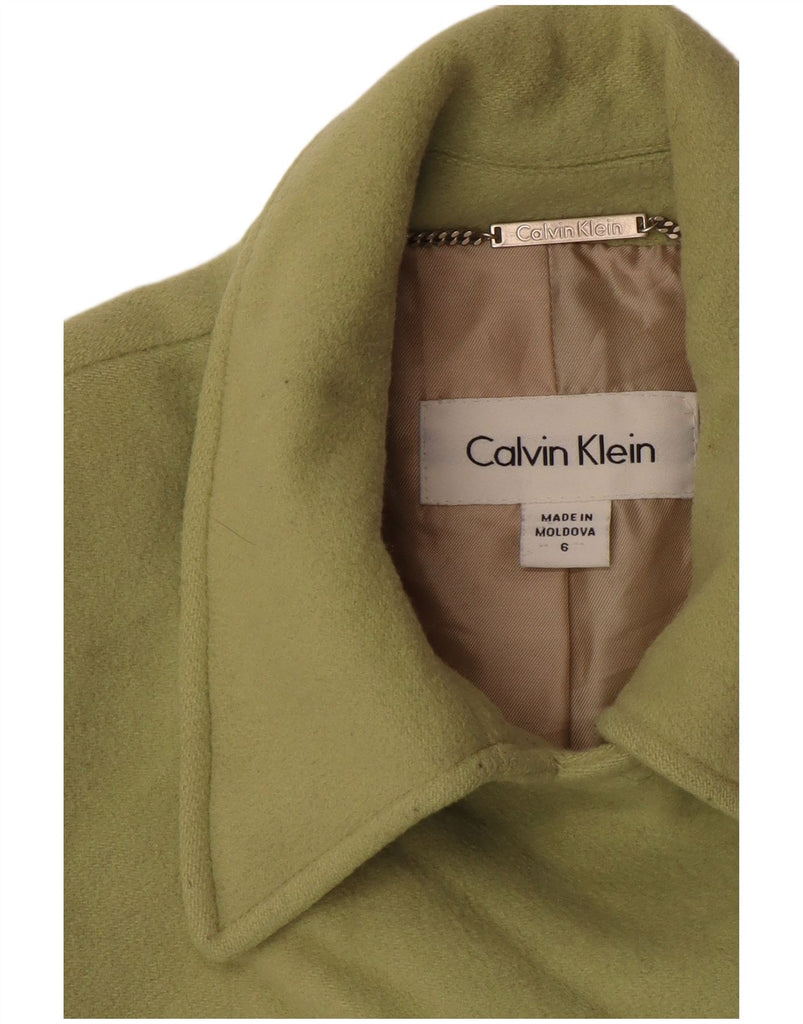 Jaqueta blazer feminina CALVIN KLEIN com peito duplo tamanho 6 lã verde médio