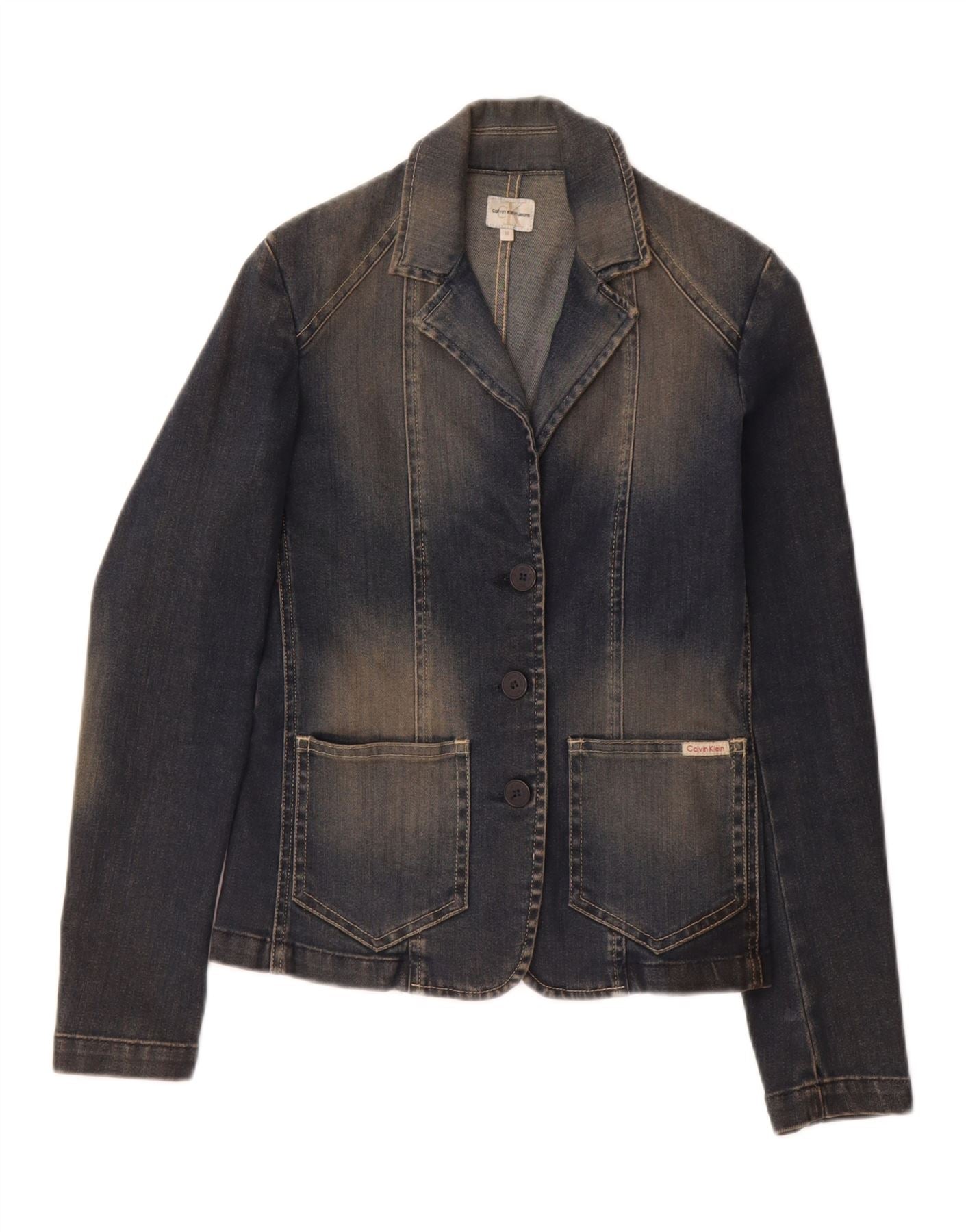 Jaqueta blazer feminina CALVIN KLEIN jeans com 3 botões Reino Unido 12 algodão azul médio