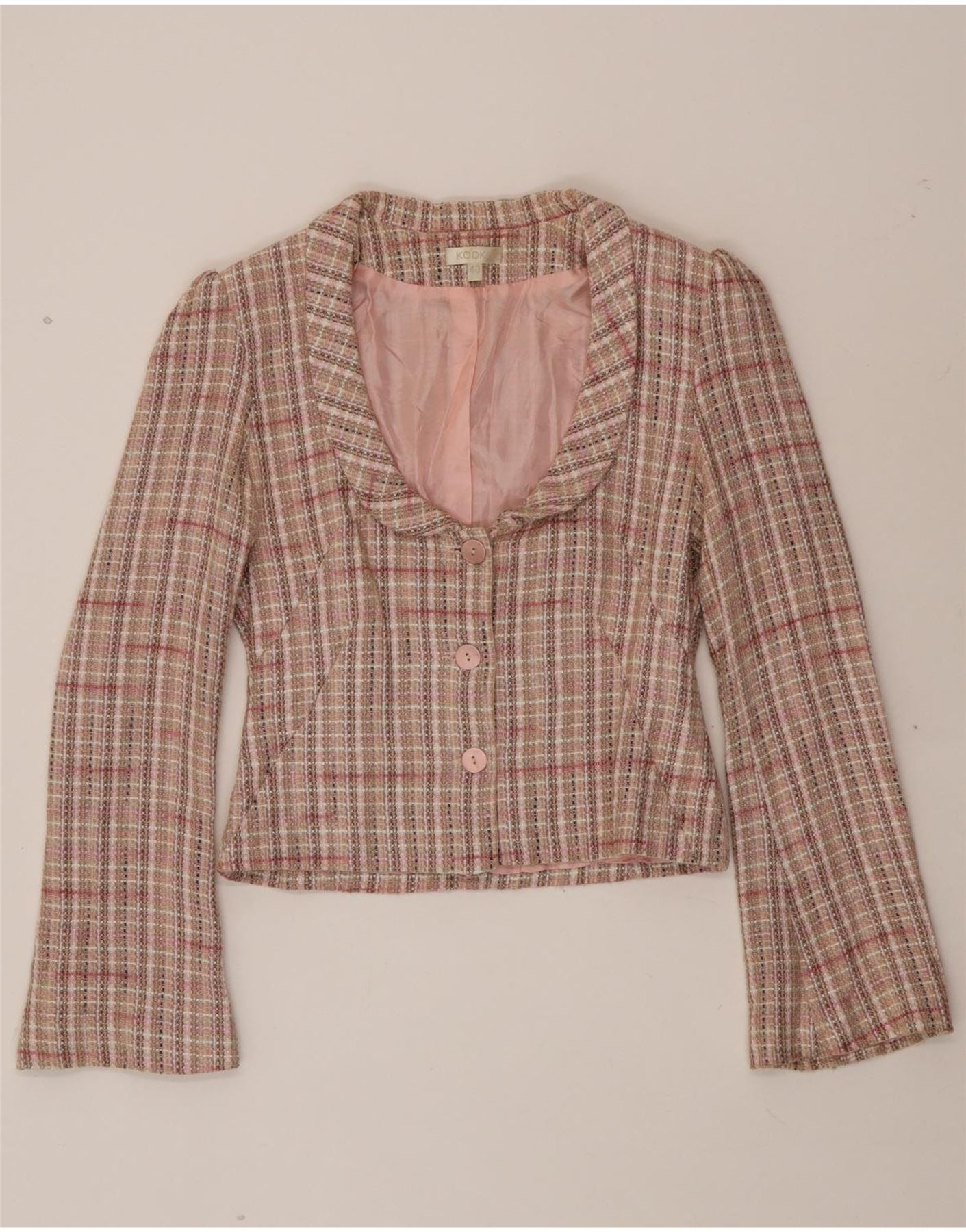 Jaqueta blazer feminina com 3 botões KOOKAI IT 40 pequena viscose rosa xadrez