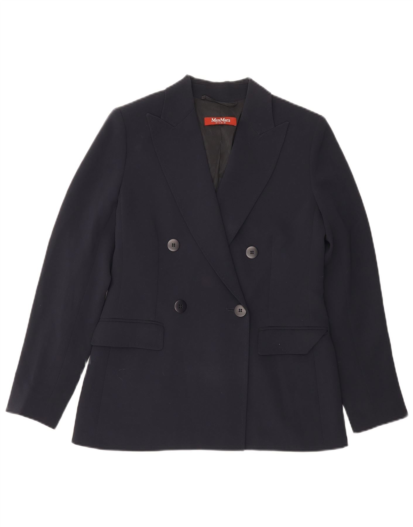 Jaqueta blazer feminina com peito duplo MAX MARA Reino Unido 10 pequena azul marinho