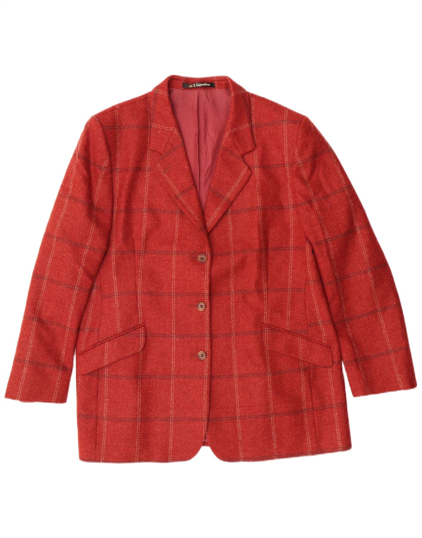- Descrição da IA: Esta jaqueta Blazer feminina DAKS é confeccionada em pura lã nova com uma textura tecida. Possui um padrão xadrez vermelho clássico. O decote com gola e as mangas compridas oferecem uma silhueta refinada. O fecho de botão e o ajuste regular garantem conforto e estilo. Inclui bolsos práticos e é totalmente forrado para um acabamento polido.