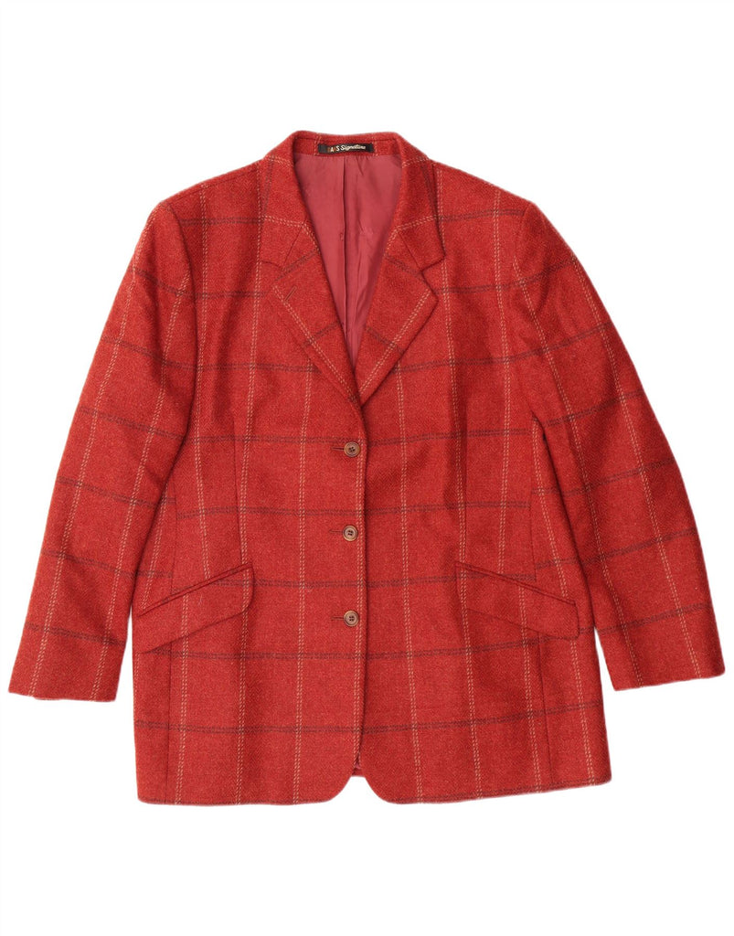 Jaqueta blazer feminina DAKS com 3 botões Reino Unido 18 XL Borgonha xadrez nova lã