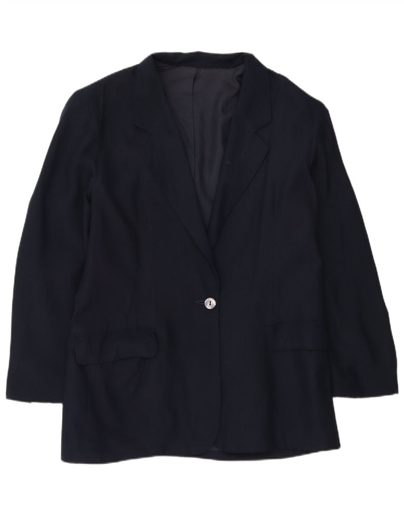 Jaqueta blazer feminina DANIEL HECHTER com 1 botão Reino Unido 14 grande seda azul marinho
