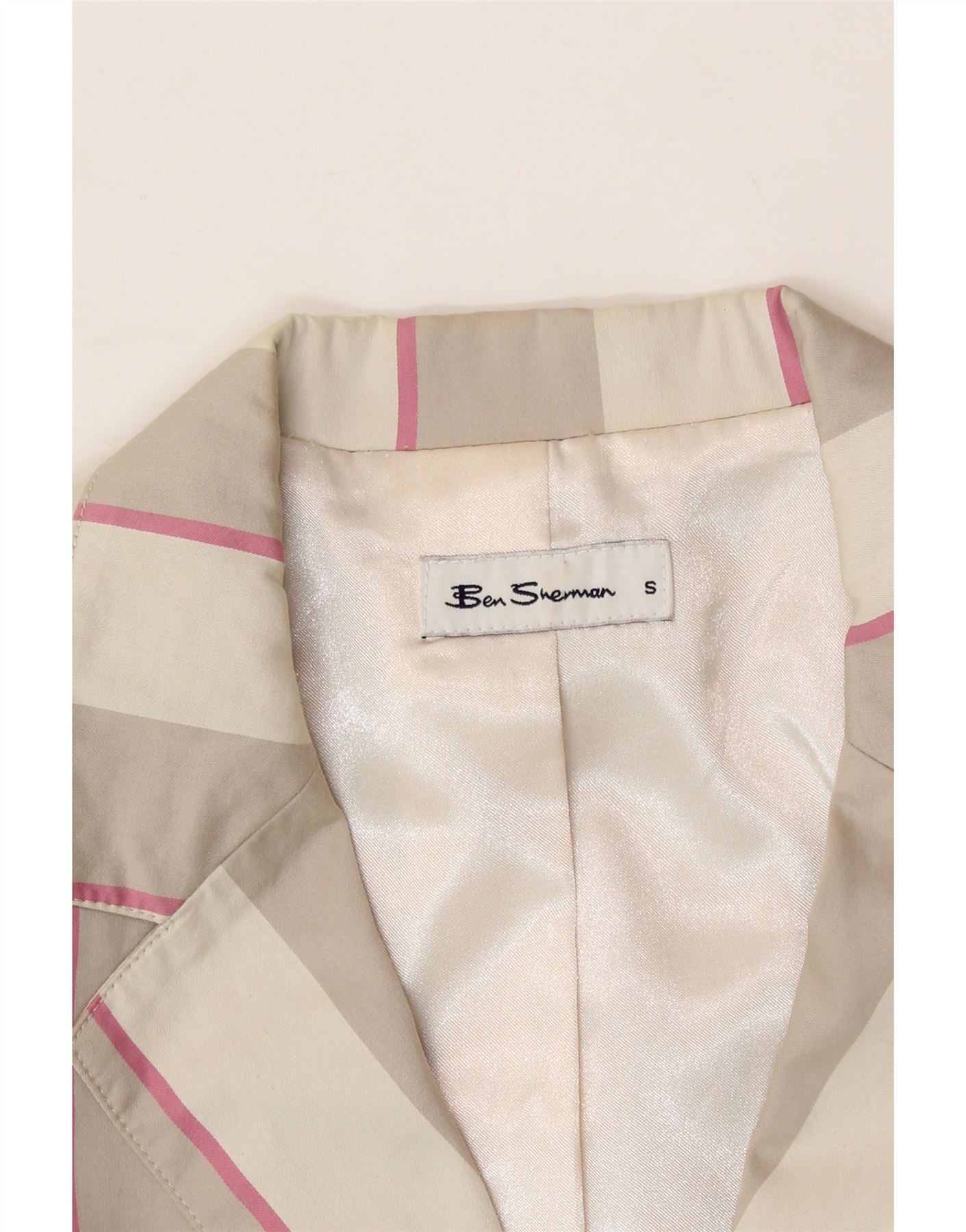 Jaqueta blazer feminina de 2 botões BEN SHERMAN Reino Unido 10 pequeno algodão listrado bege