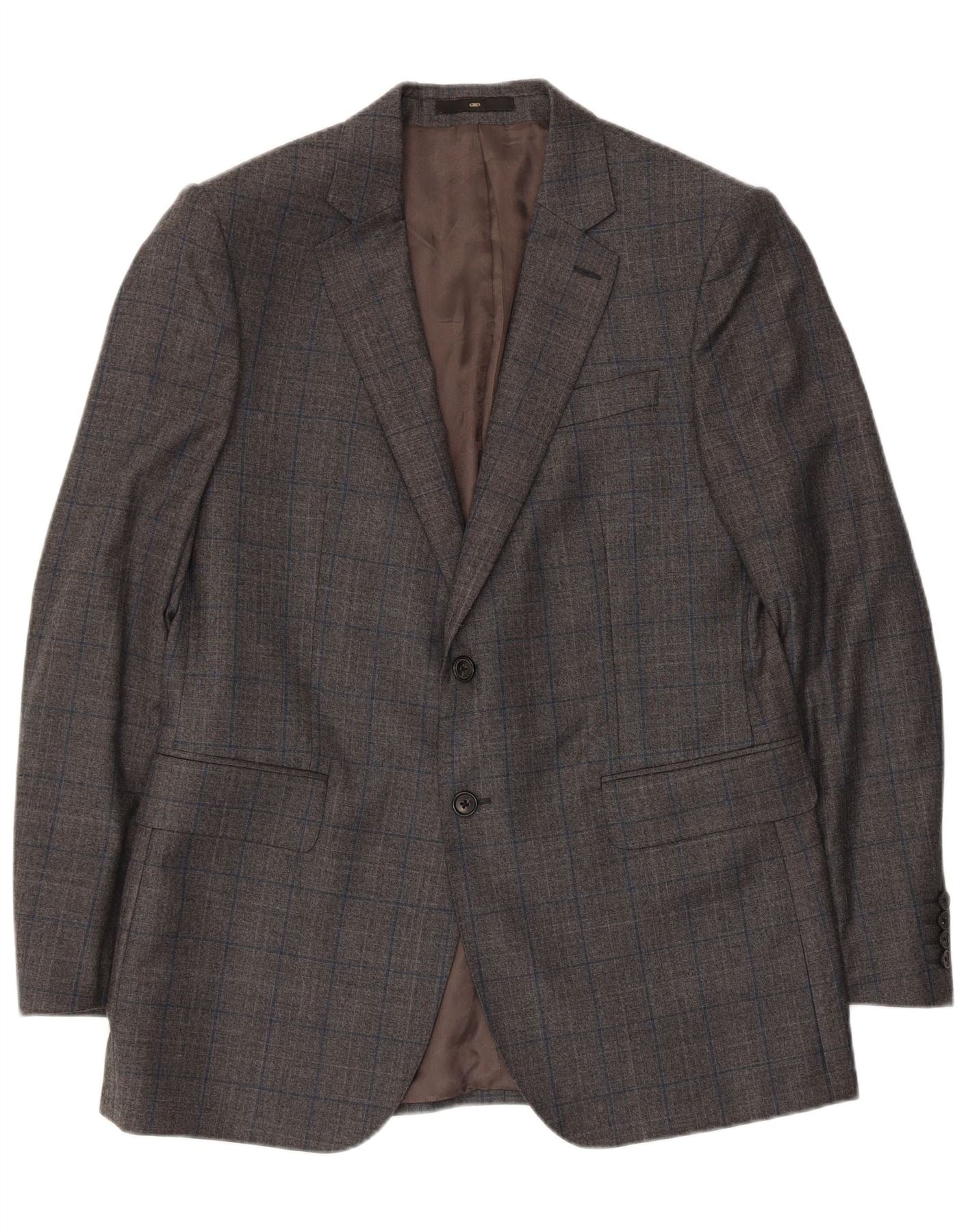 Jaqueta blazer feminina de 2 botões JAEGER Reino Unido 40 grande lã xadrez cinza