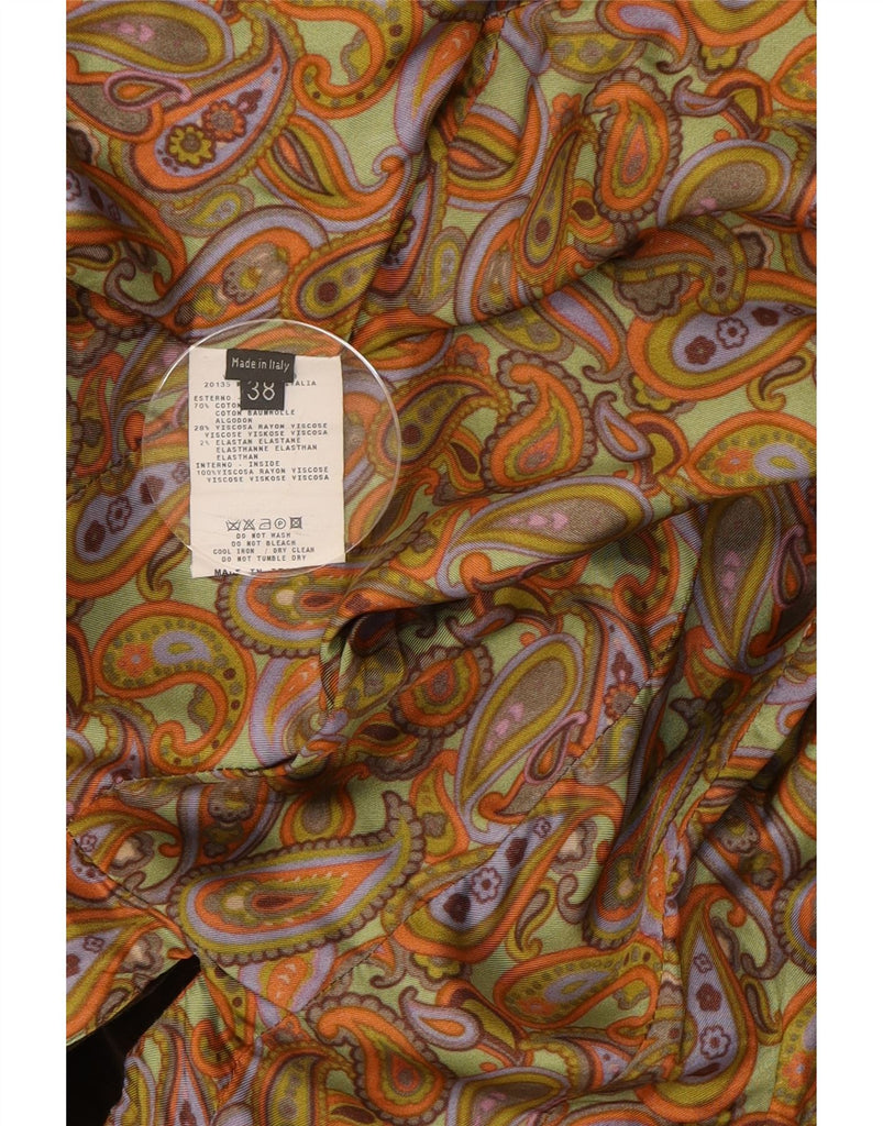 - Descrição da IA: Este conjunto de veludo feminino Etro é feito de uma luxuosa mistura de veludo de algodão, oferecendo um rico brilho marrom. O decote com gola e as mangas compridas definem uma silhueta clássica. Um padrão paisley distinto adorna o tecido, adicionando um toque abstrato e artístico. Os fechos de botão proporcionam um acabamento refinado. O ajuste regular garante conforto e elegância. É totalmente forrado e inclui bolsos práticos, combinando estilo com funcionalidade.