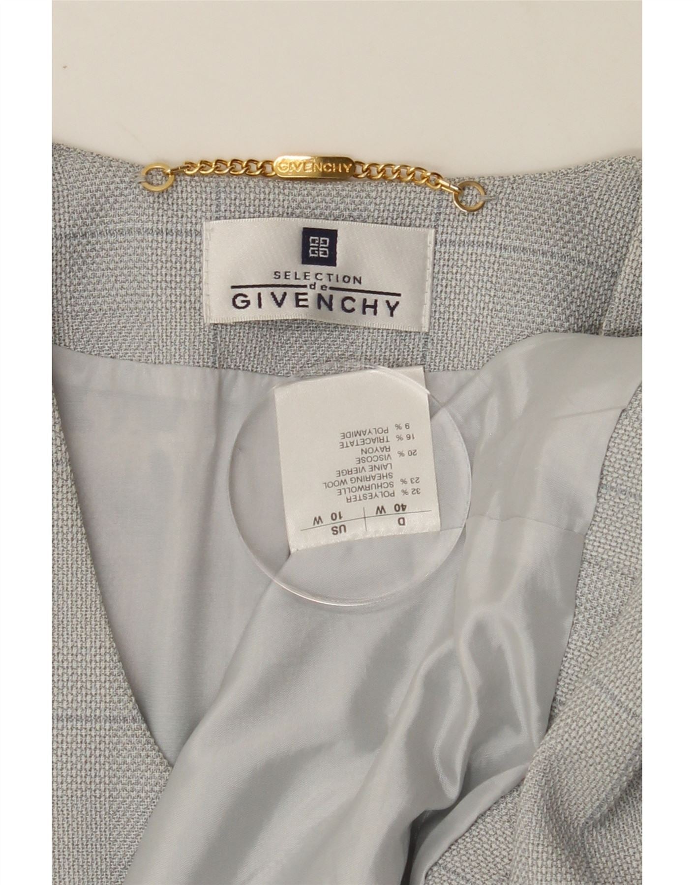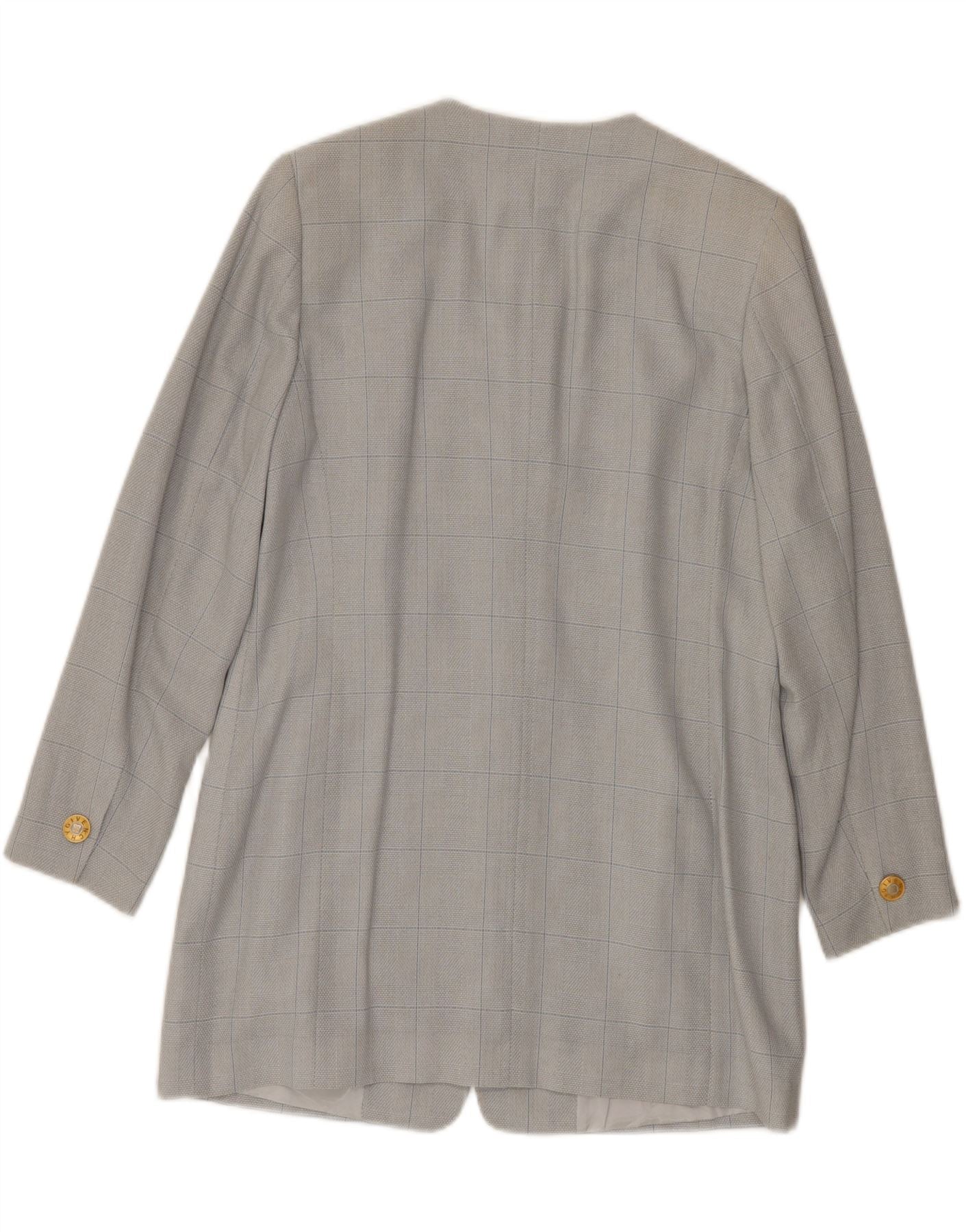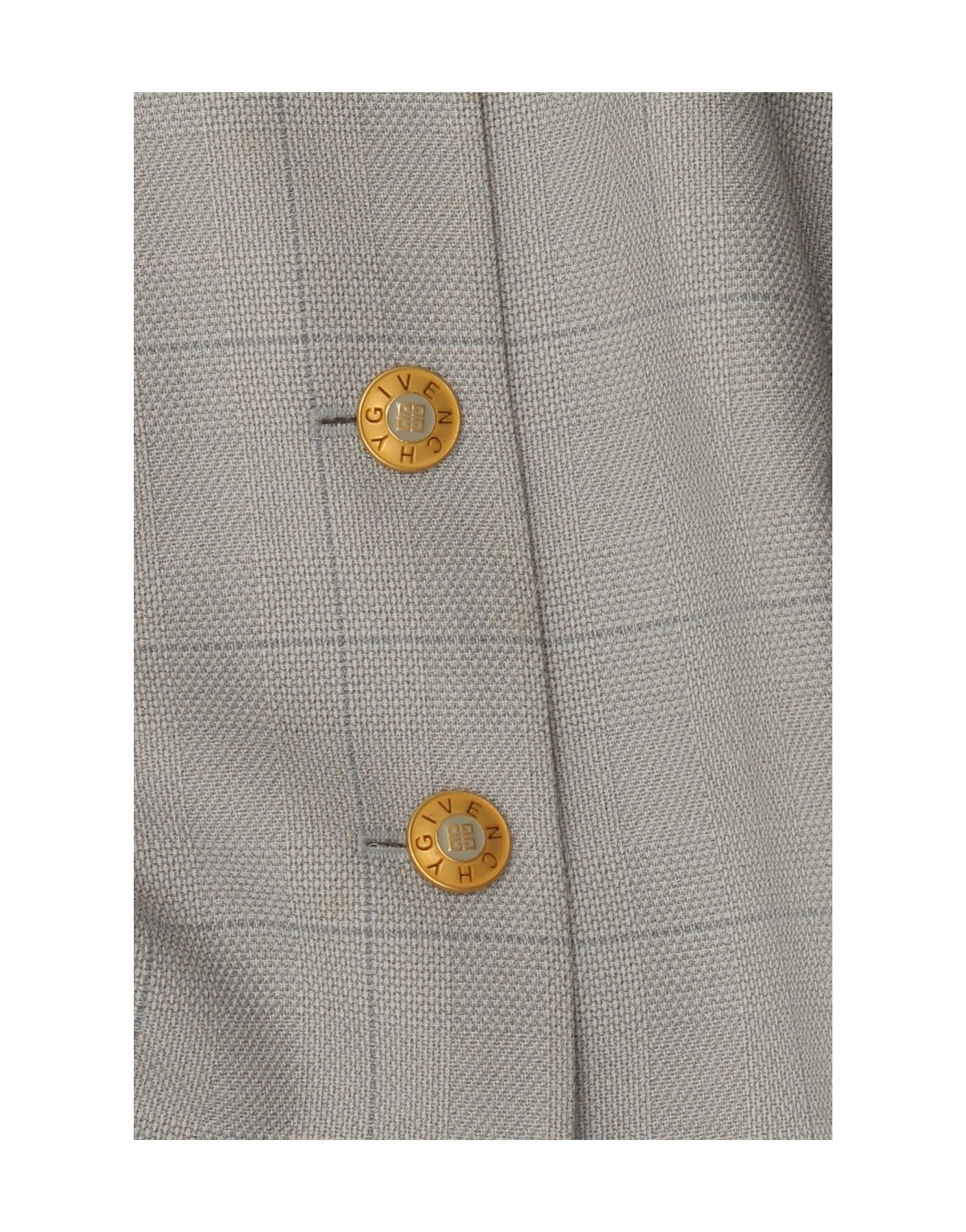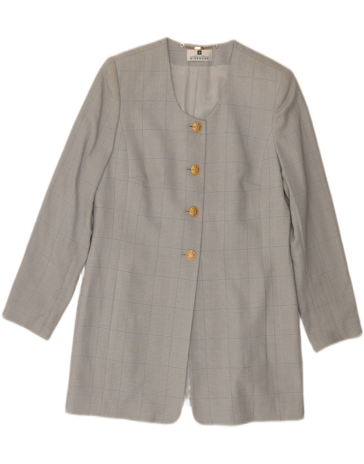 Jaqueta blazer feminina Longline com 4 botões da GIVENCHY EUA 10 xadrez cinza grande
