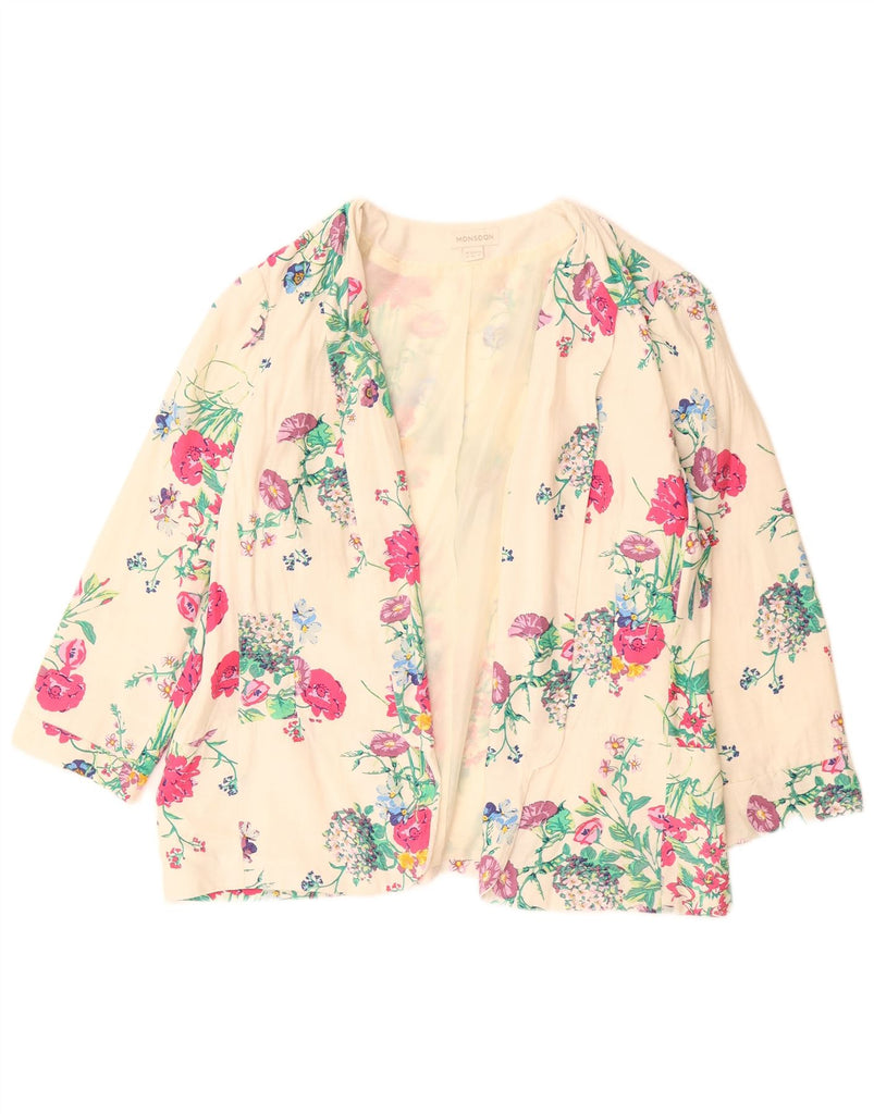 Jaqueta blazer feminina MONSOON manga 3/4 aberta Reino Unido 18 XL branco floral