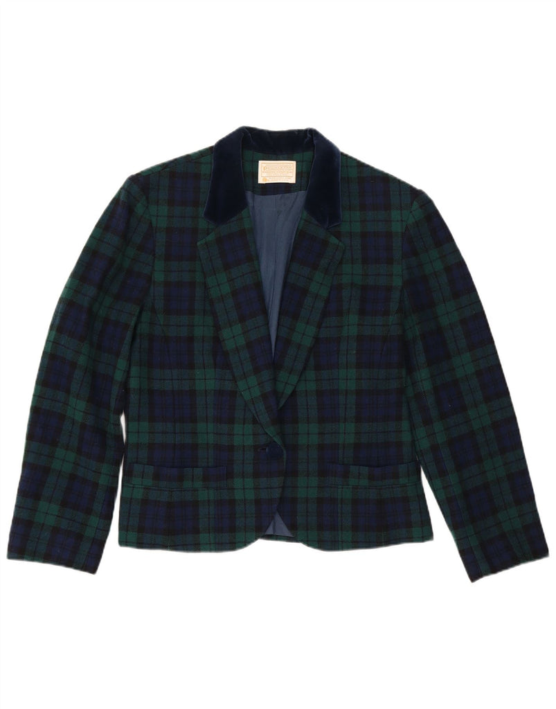 Jaqueta blazer feminina PENDLETON com 1 botão US 8 verde médio xadrez nova lã