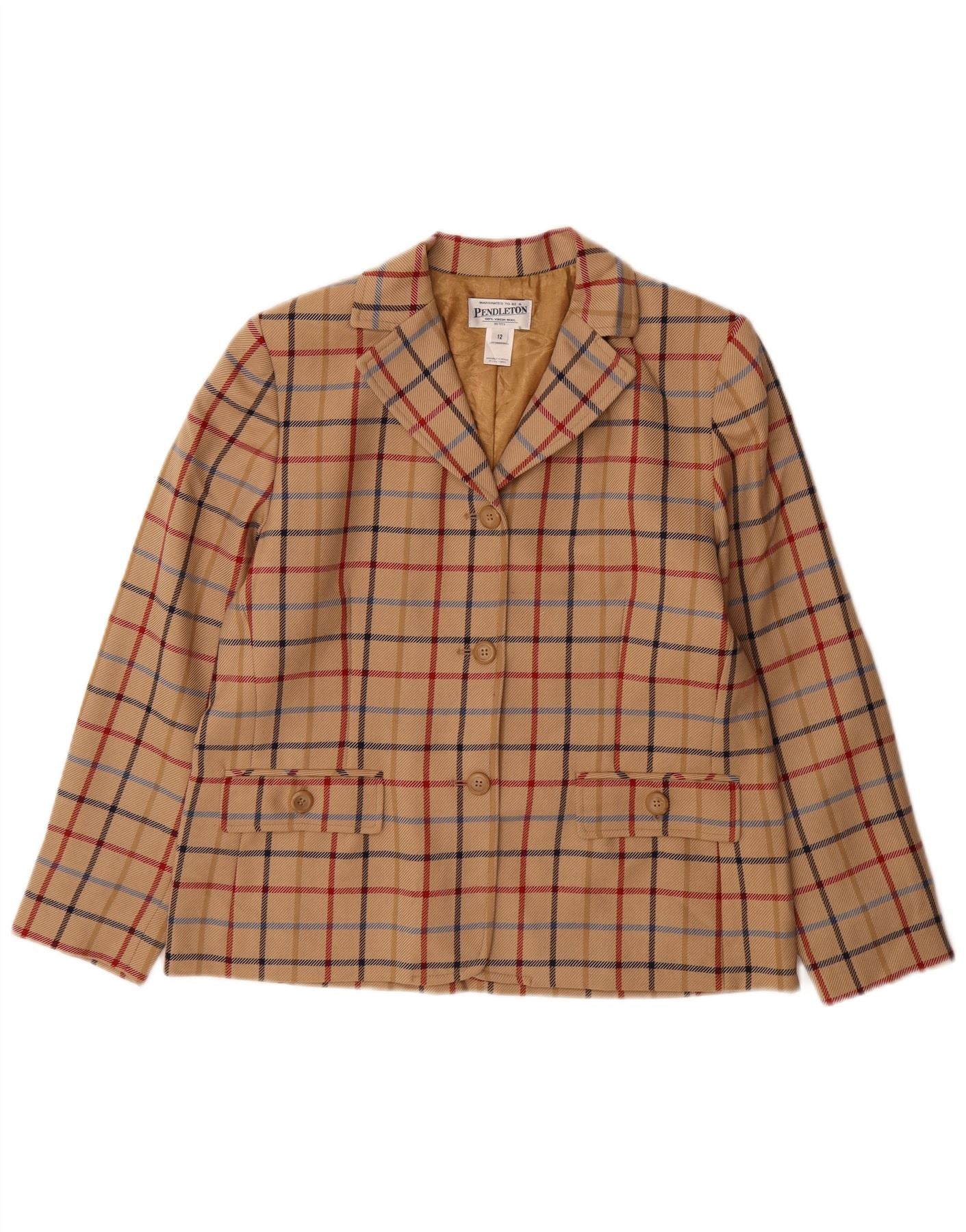 Jaqueta blazer feminina PENDLETON Petite de 3 botões EUA 12 grande xadrez bege