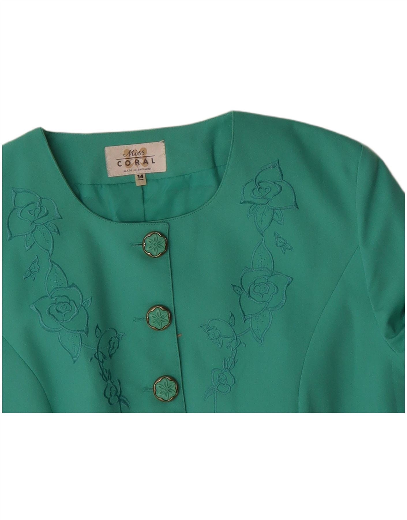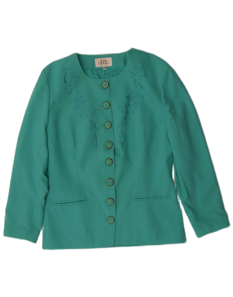Jaqueta blazer feminina VINTAGE Reino Unido 14 grande poliéster floral verde