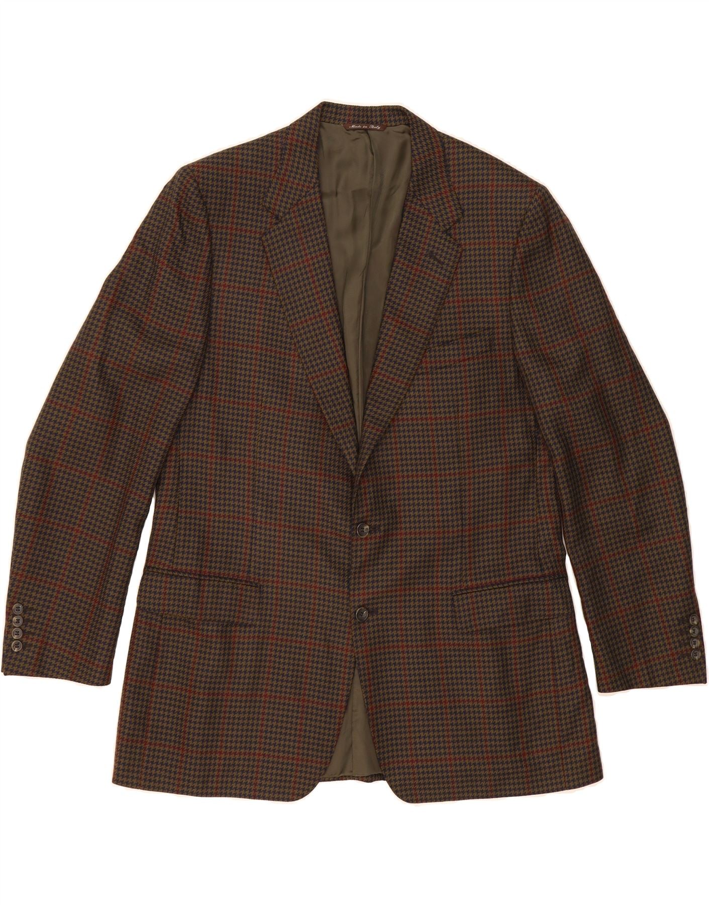 Jaqueta blazer masculina CANALI com 2 botões Reino Unido 40 grande lã marrom houndstooth