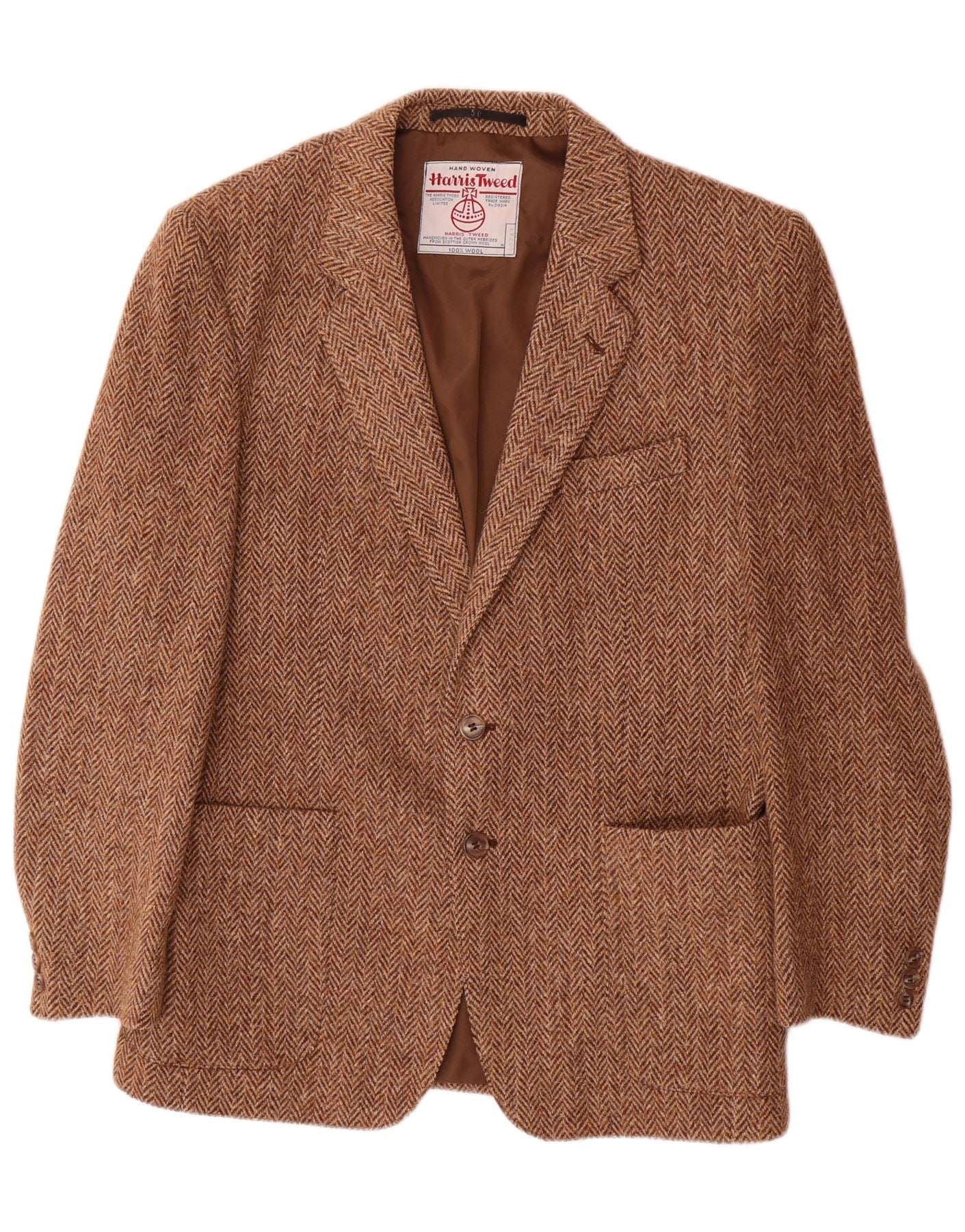 Jaqueta blazer masculina de 2 botões HARRIS TWEED UE 50 grande espinha de peixe marrom