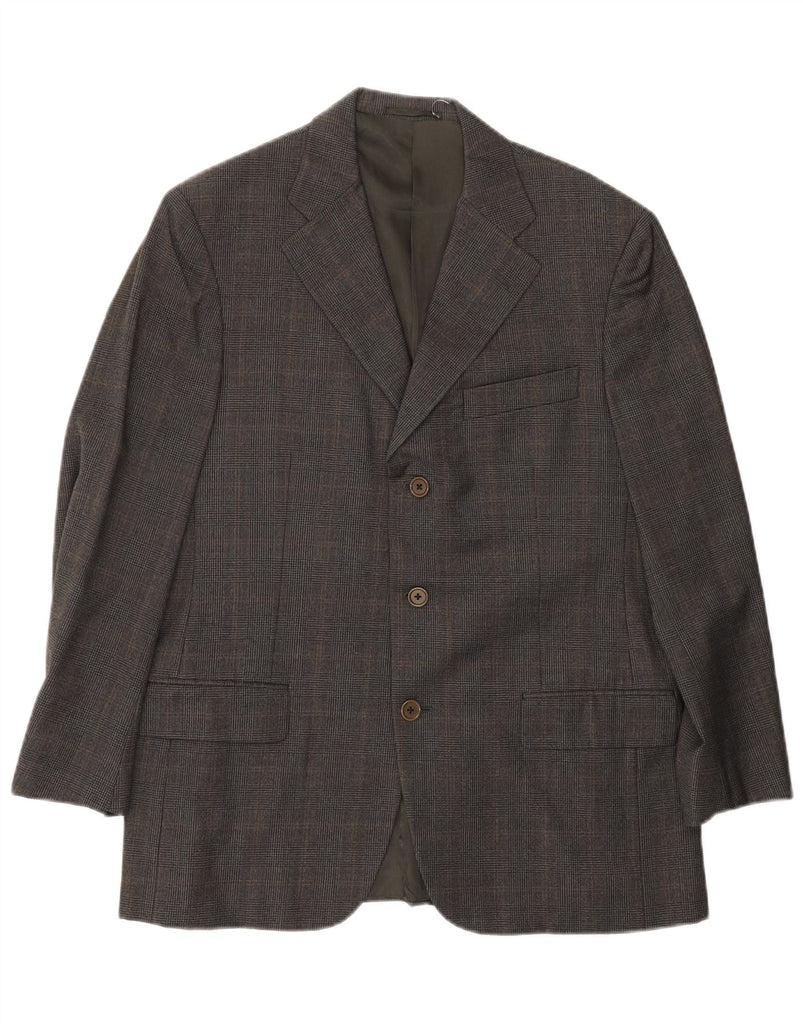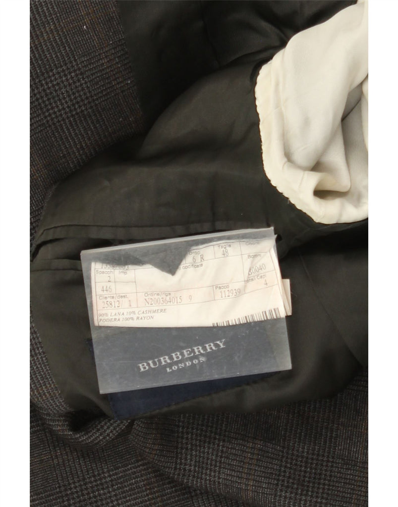 Jaqueta blazer masculina de 3 botões BURBERRY IT 48 lã houndstooth cinza médio