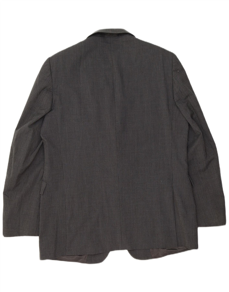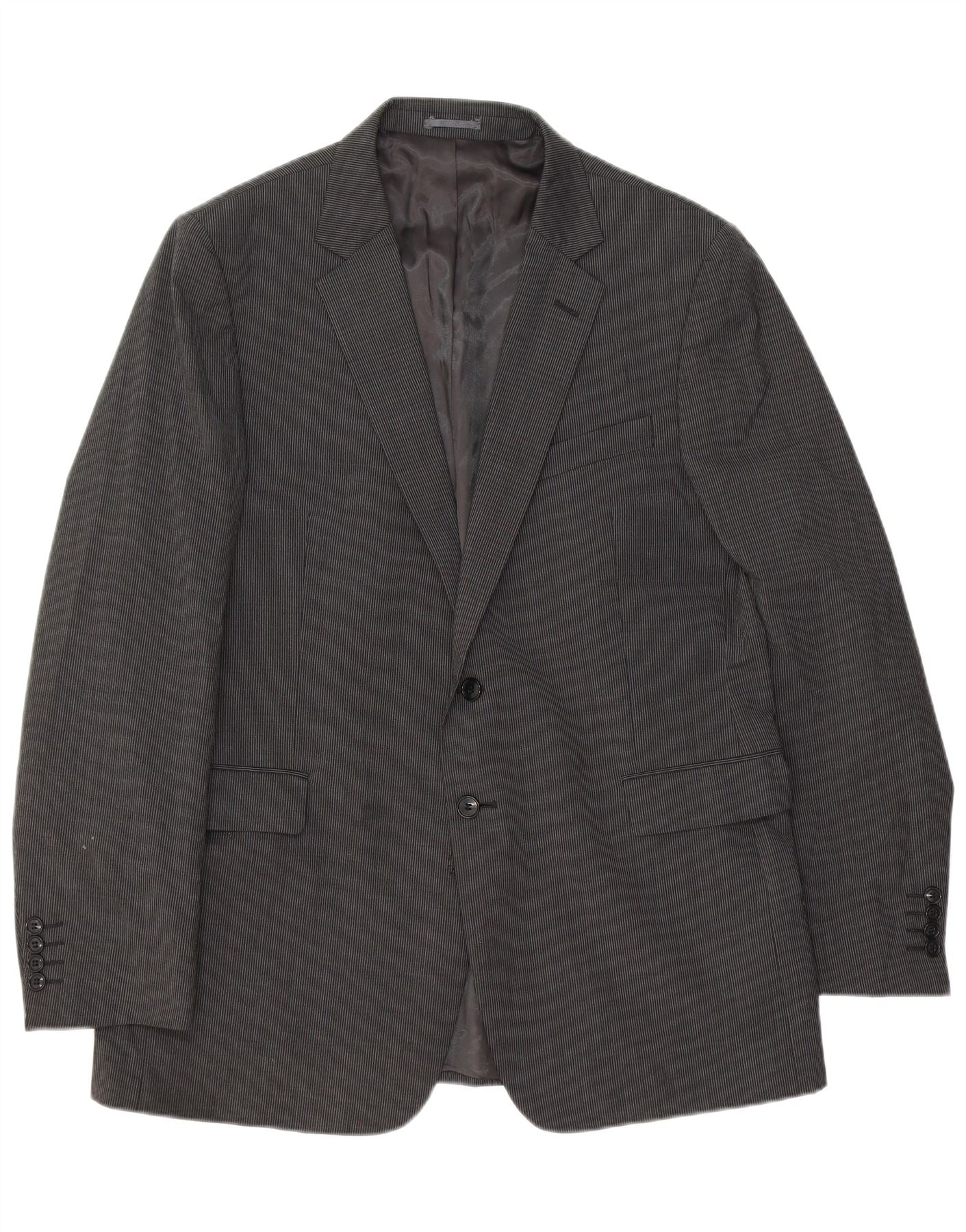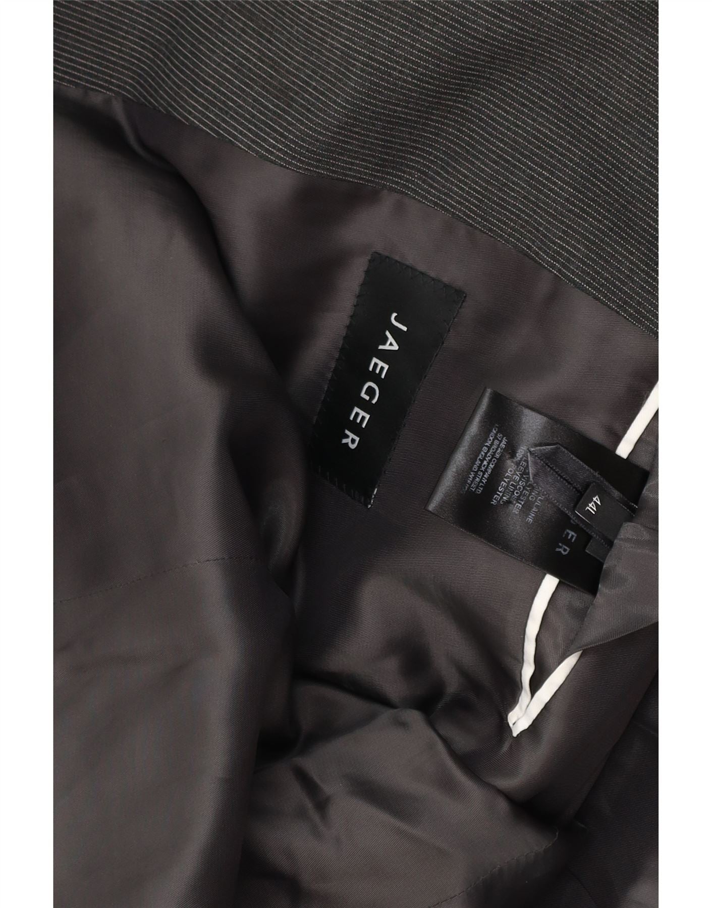 Jaqueta blazer masculina JAEGER com 2 botões Reino Unido 44 2XL poliéster listrado cinza