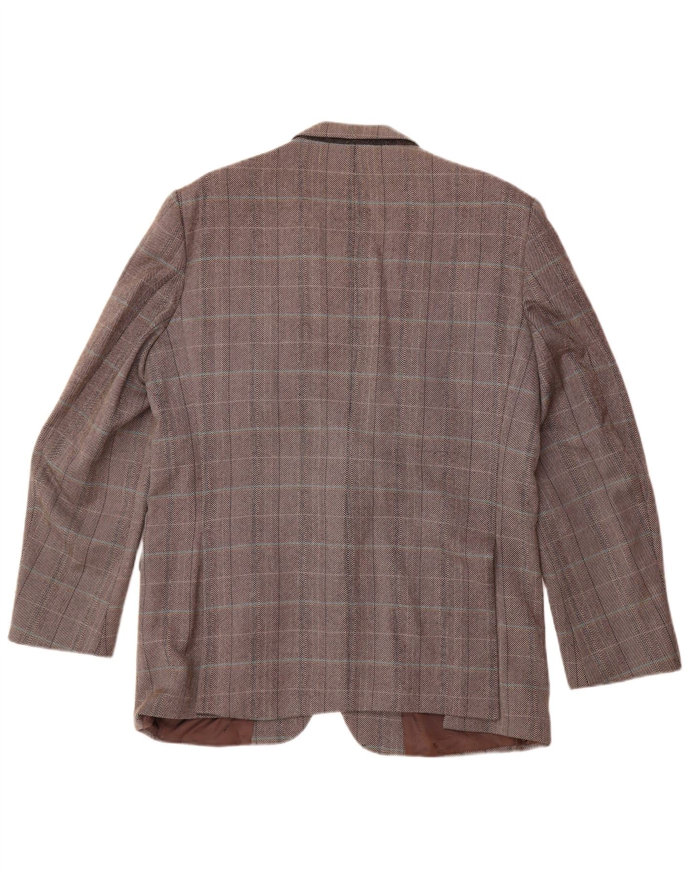 - Descrição da IA: Esta jaqueta blazer masculina Aquascutum é confeccionada em luxuoso tweed de pura lã nova. Apresenta um clássico padrão xadrez marrom. O decote com gola e a frente com dois botões oferecem um visual atemporal e refinado. Mangas compridas e corte regular garantem conforto. Bolsos práticos e forro completo completam este estilo clássico.