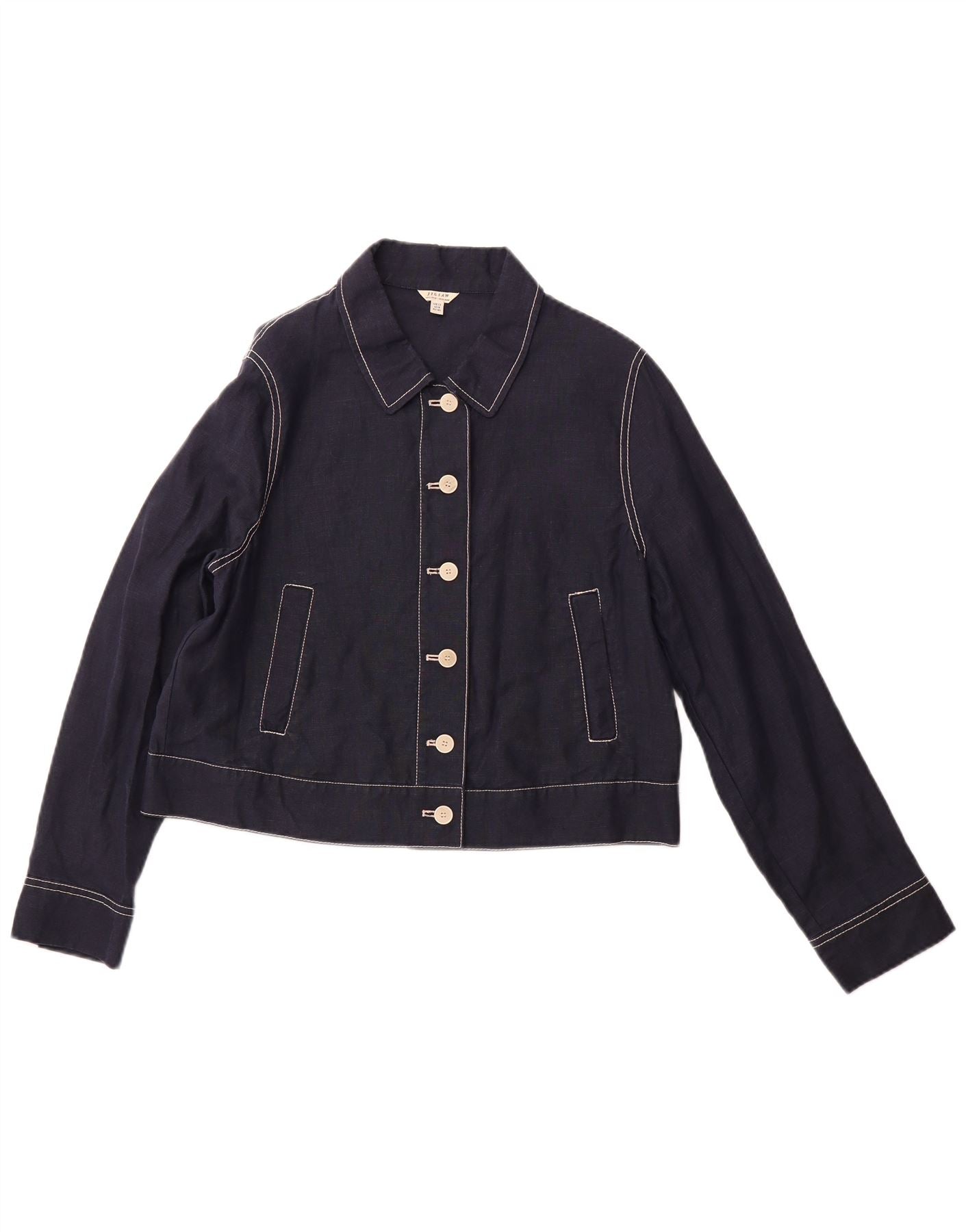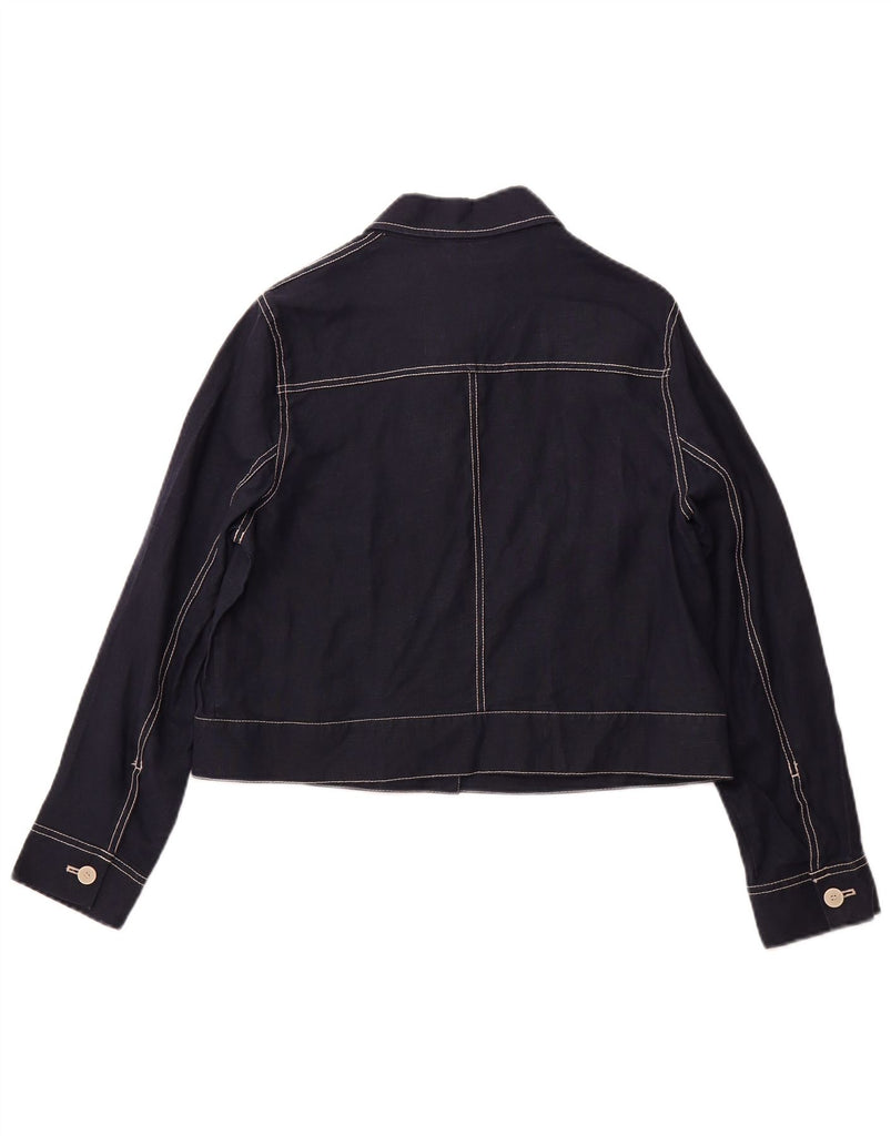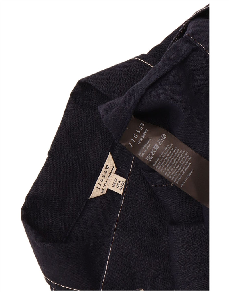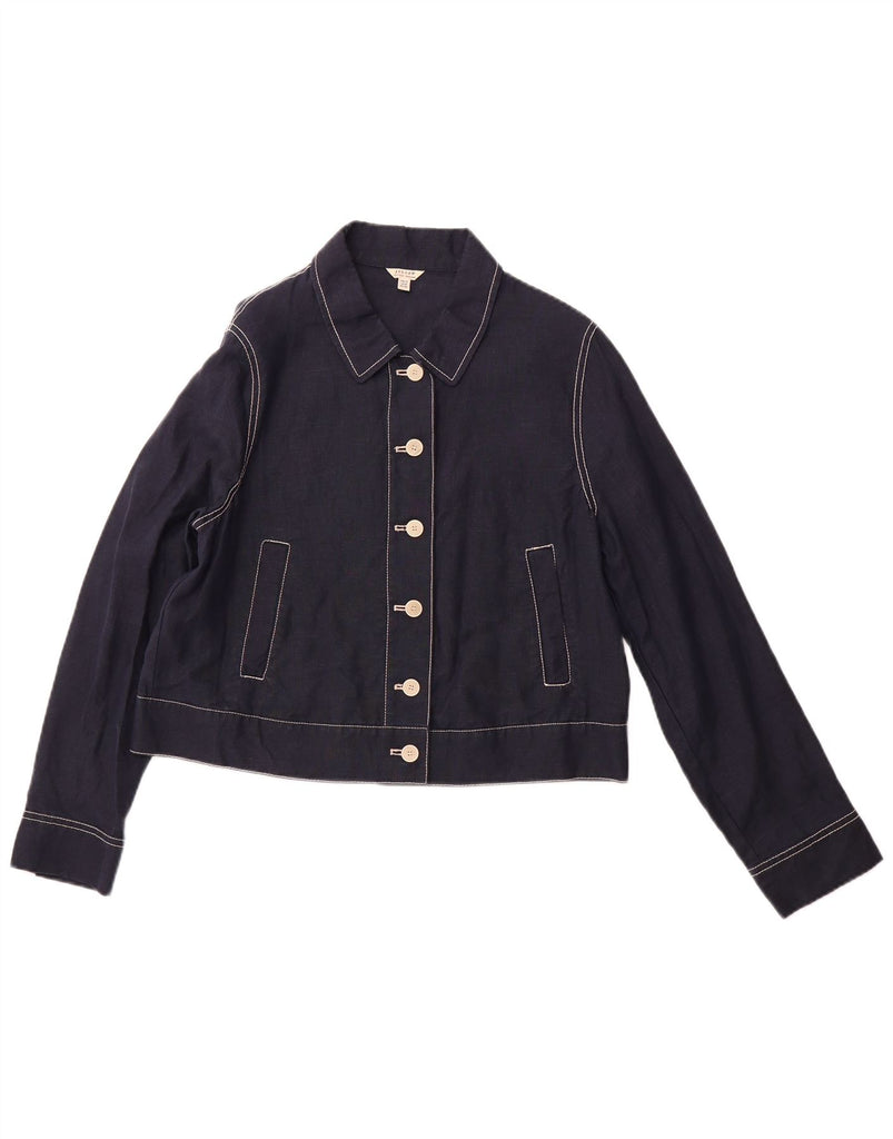 Jaqueta bomber feminina JIGSAW UK 12 linho azul marinho médio