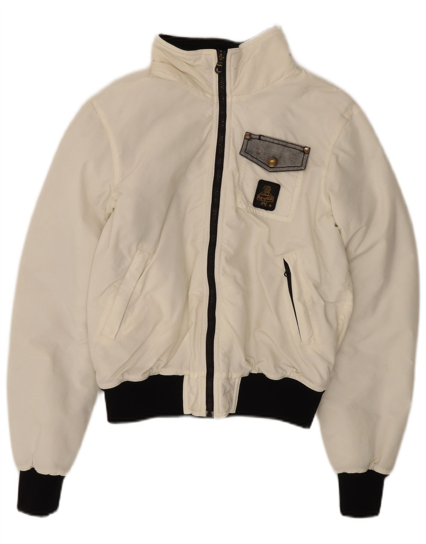 Jaqueta bomber feminina superdimensionada REFRIGIWEAR UK 10 pequena poliamida branca