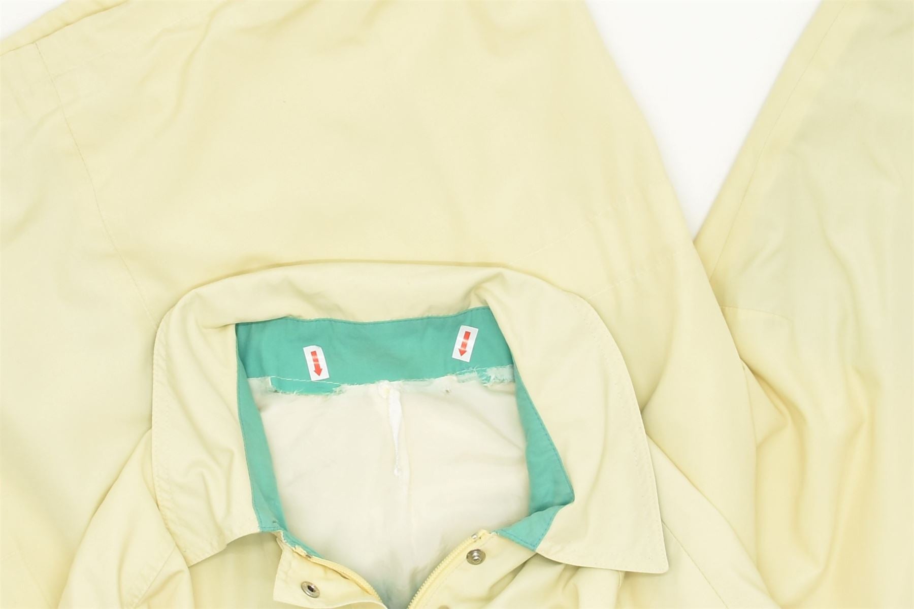 - Condição: Condição de uso justo: o item foi usado com frequência e pode ter inúmeras falhas - Rasgos dentro da gola, marcas na bainha frontal.