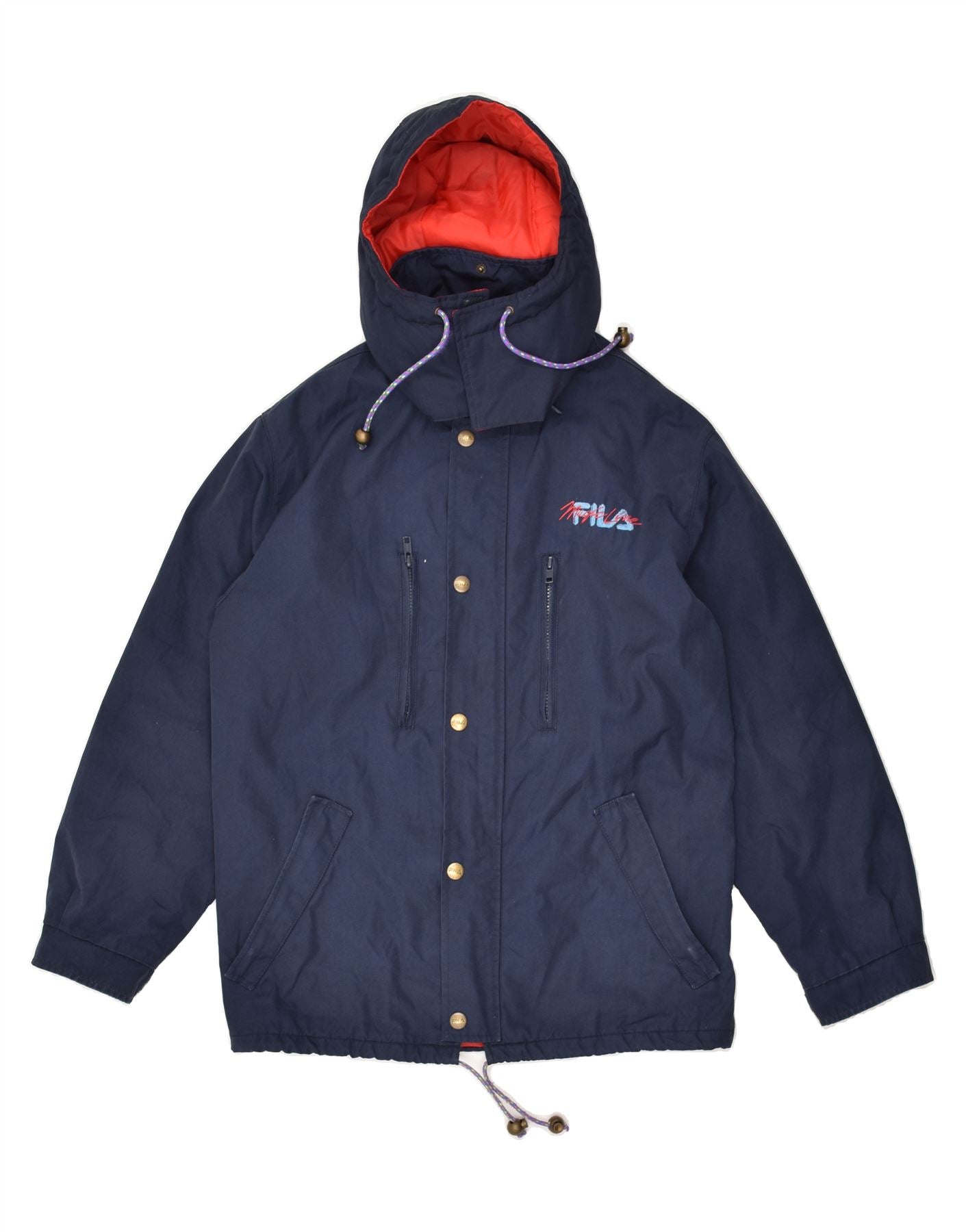 Jaqueta corta-vento masculina FILA com capuz IT 44 2XS azul marinho poliéster