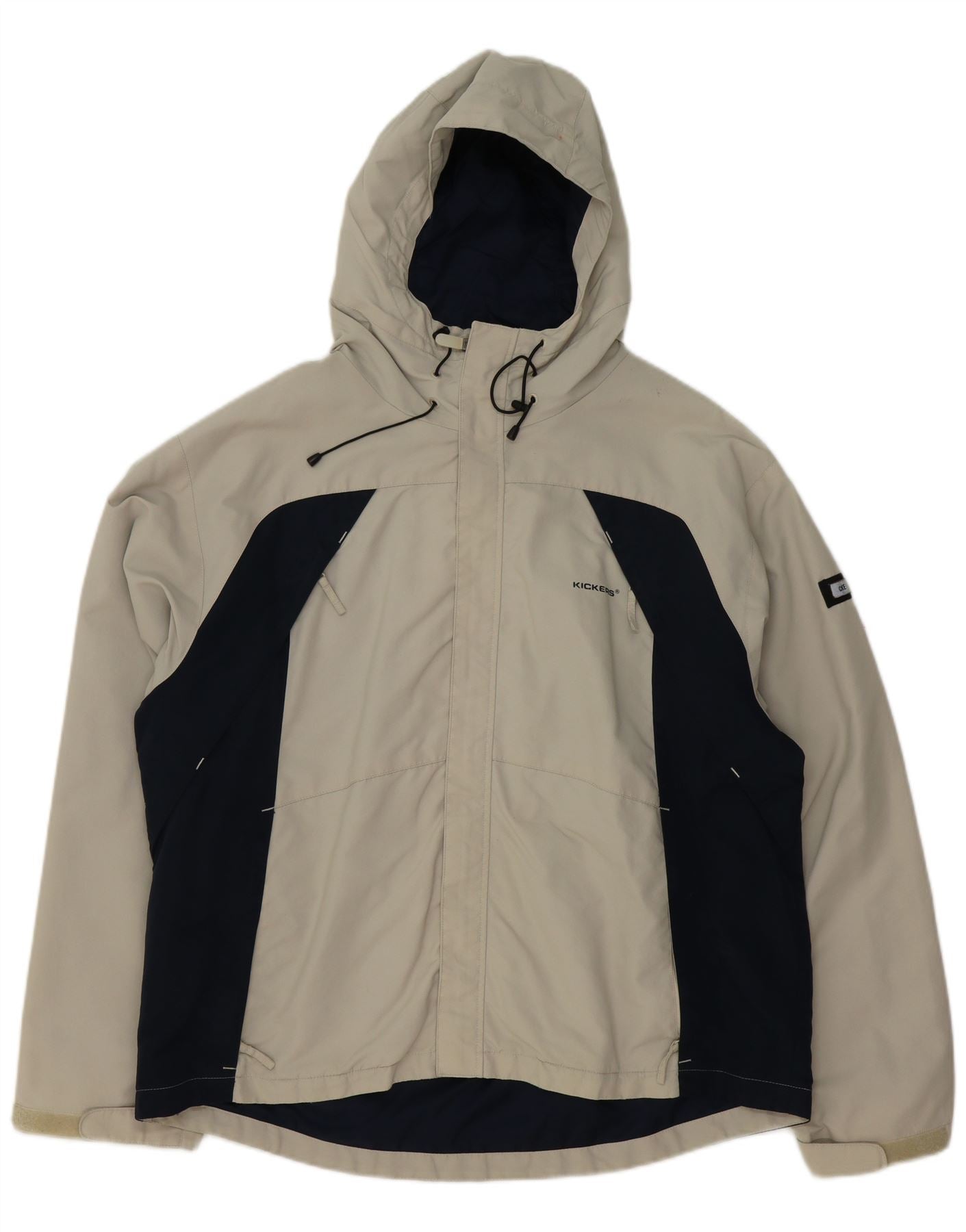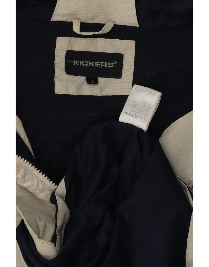 Jaqueta corta-vento masculina KICKERS com capuz UK 40 grande bege colorblock nylon