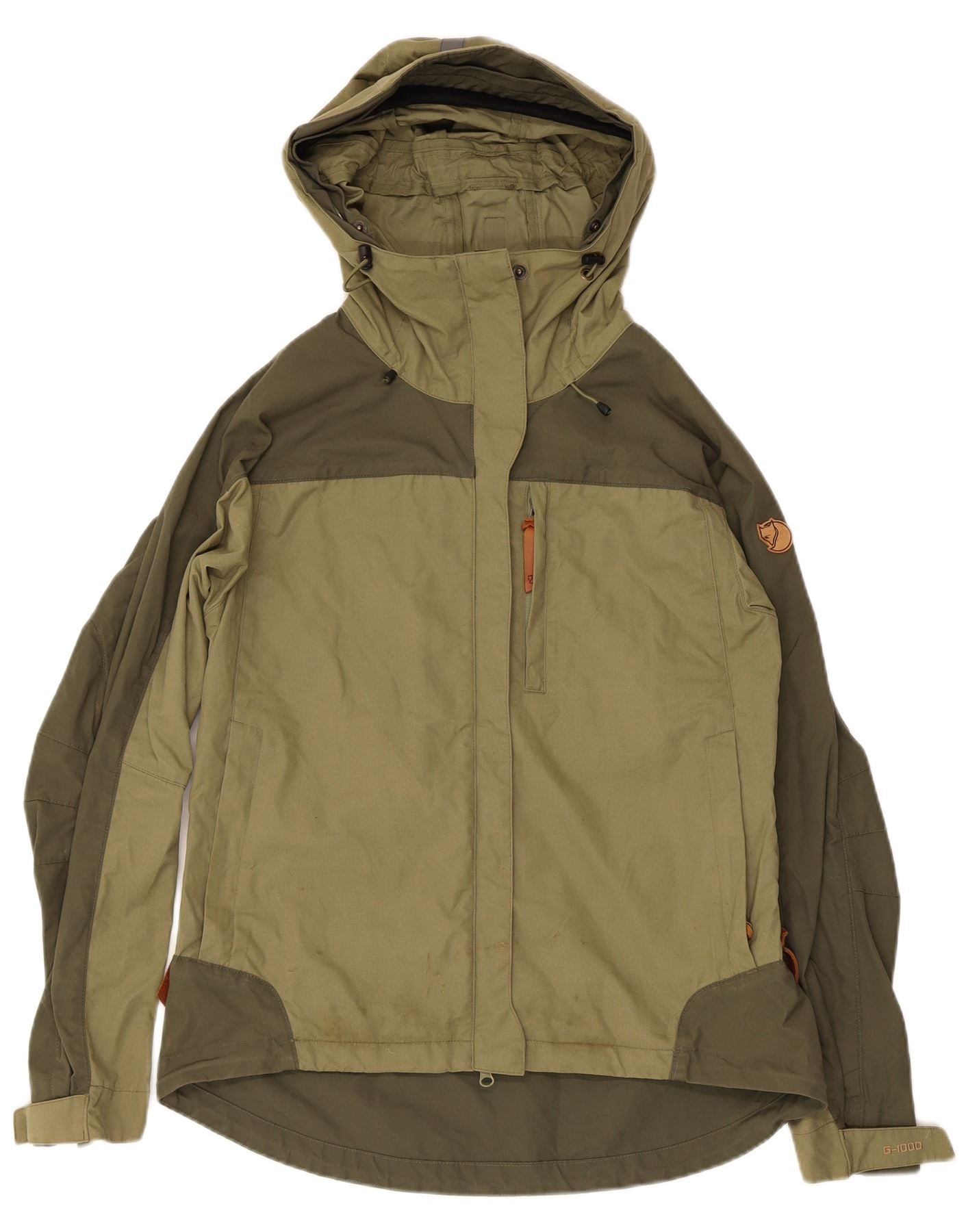 Jaqueta de chuva feminina grande FJALL RAVEN Reino Unido 10 bloco colorido cáqui pequeno