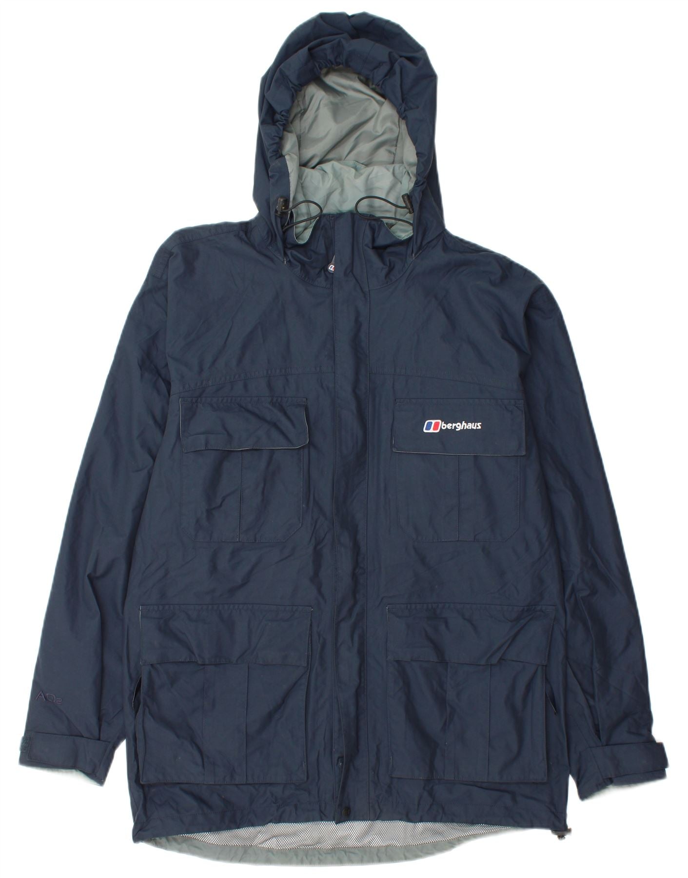 Jaqueta de chuva masculina BERGHAUS com capuz UK 38 nylon azul marinho médio