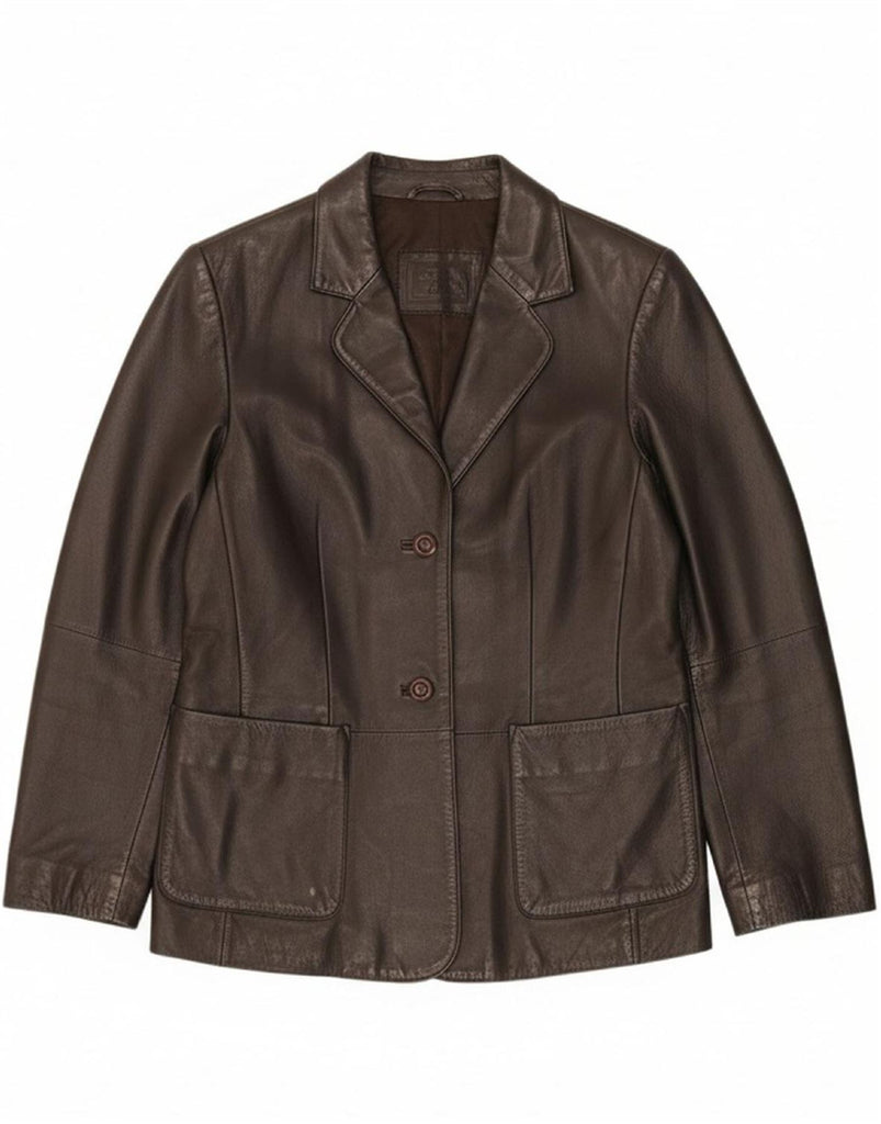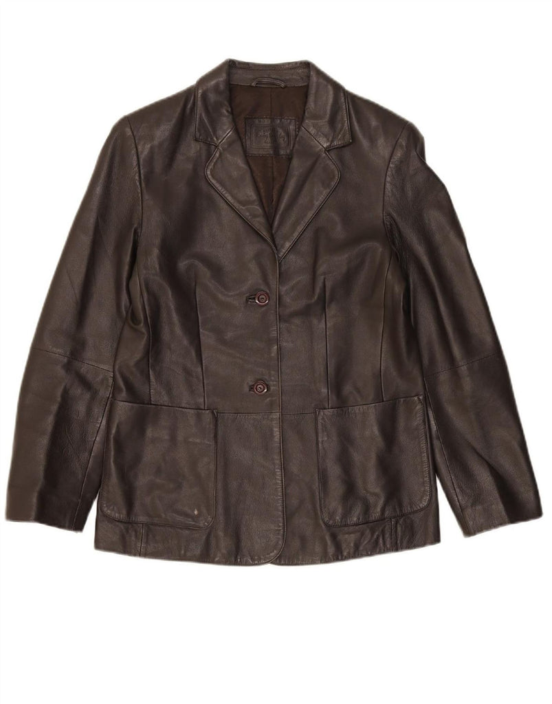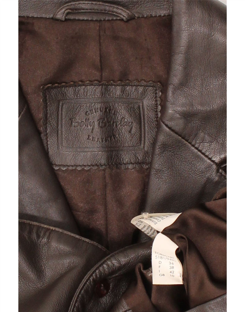 Jaqueta de couro feminina BETTY BARCLAY Reino Unido 10 pequena couro marrom