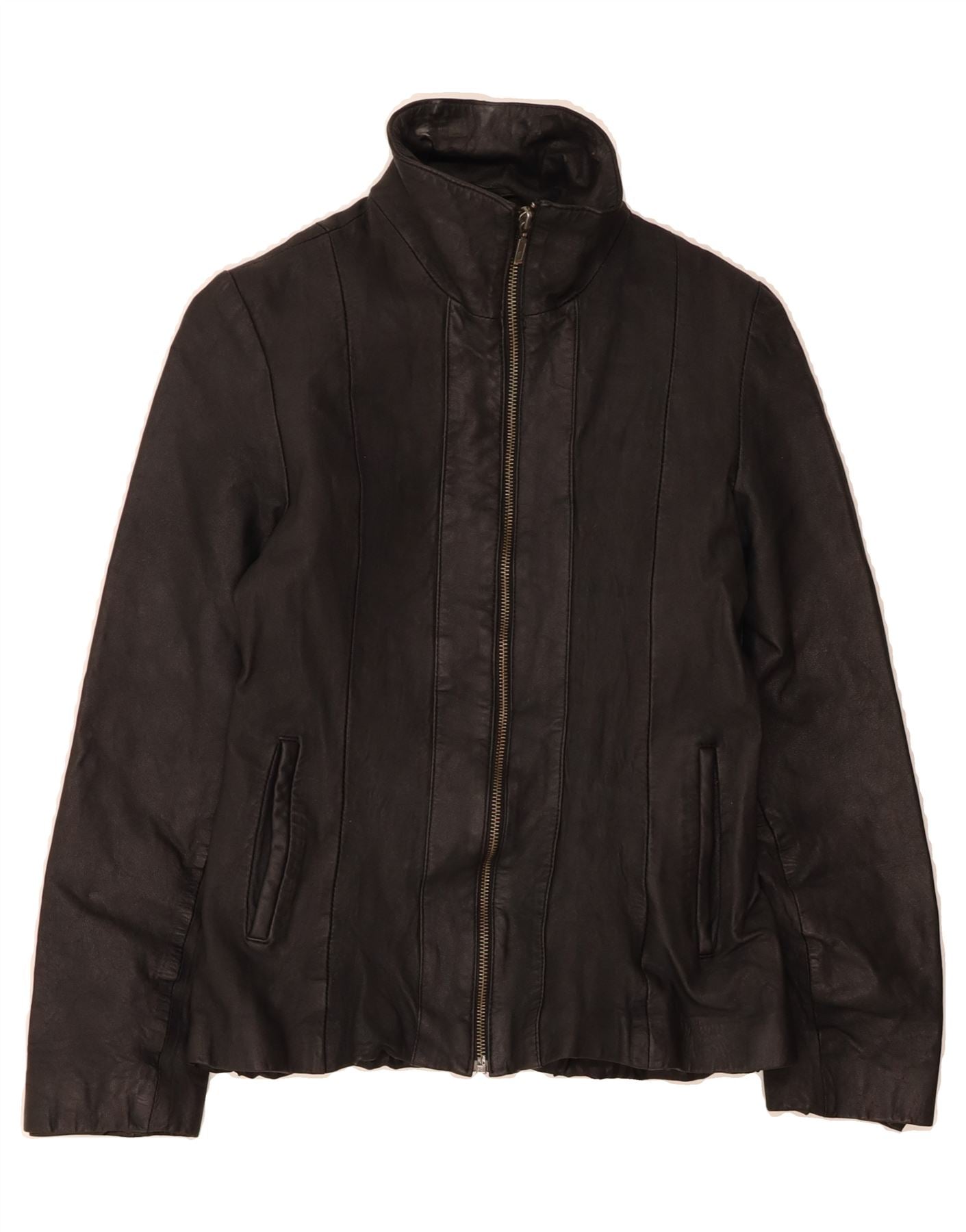 Jaqueta de couro feminina LLD UK 12 couro preto médio