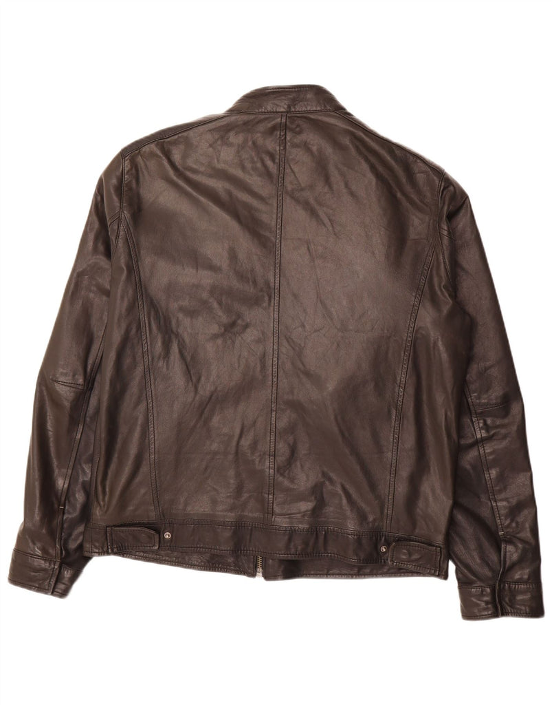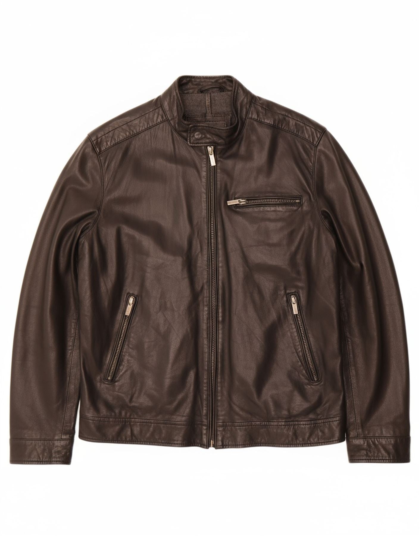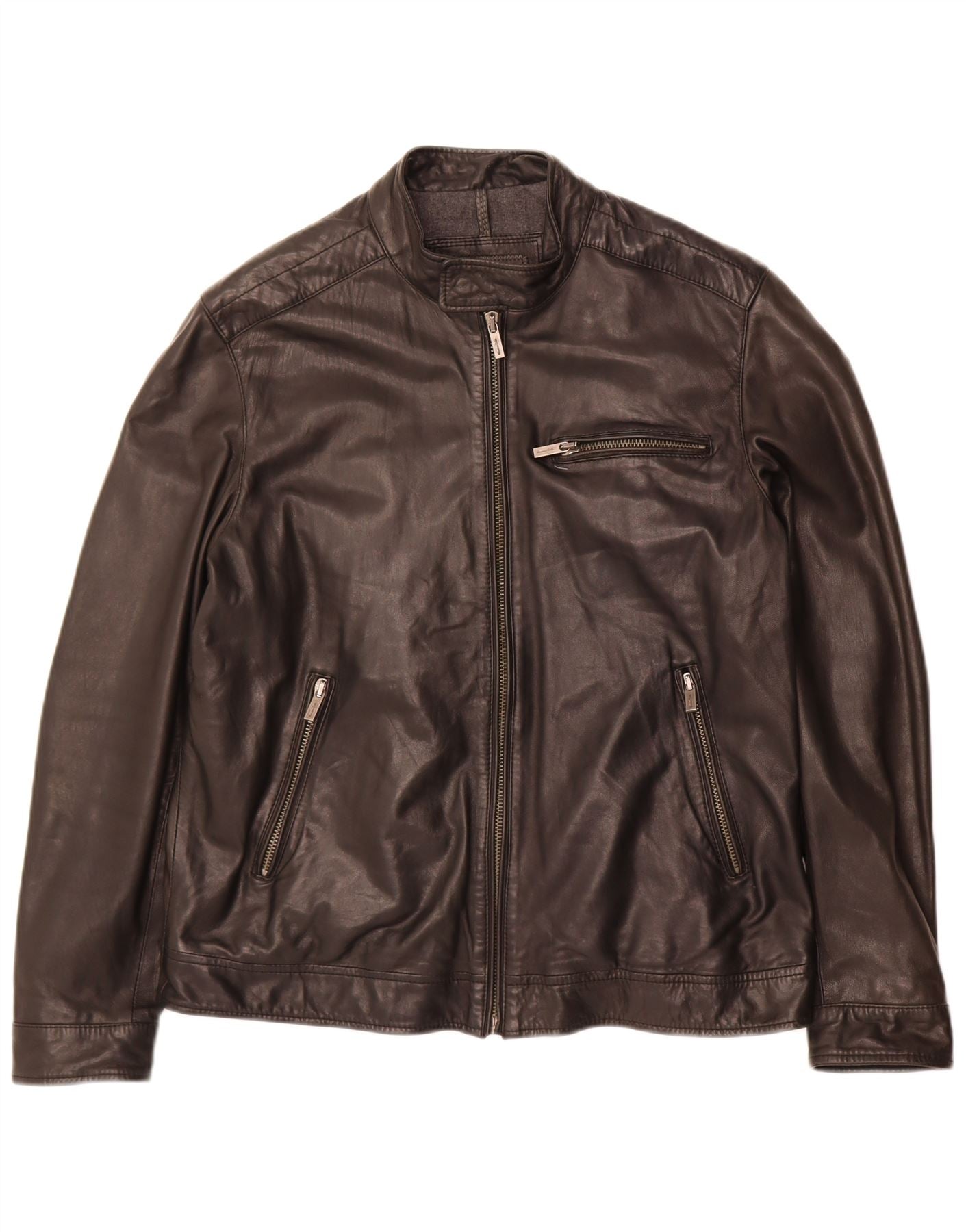 Jaqueta de couro masculina MASSIMO DUTTI EU 42 grande motociclista de couro preto