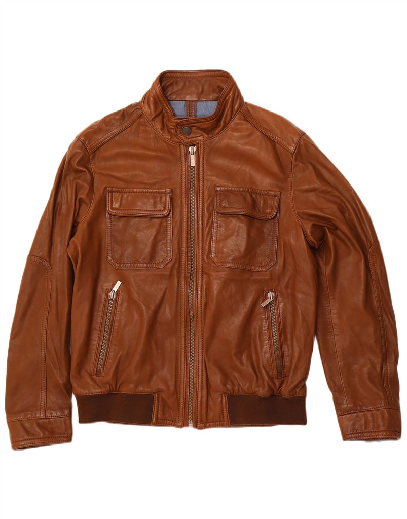 Jaqueta de couro masculina MASSIMO DUTTI Reino Unido 38 pele de carneiro marrom médio