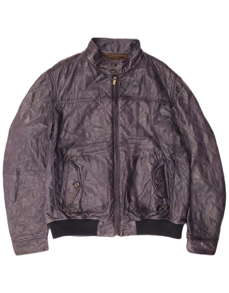 Jaqueta de couro masculina MASSIMO DUTTI Reino Unido 42 XL azul marinho