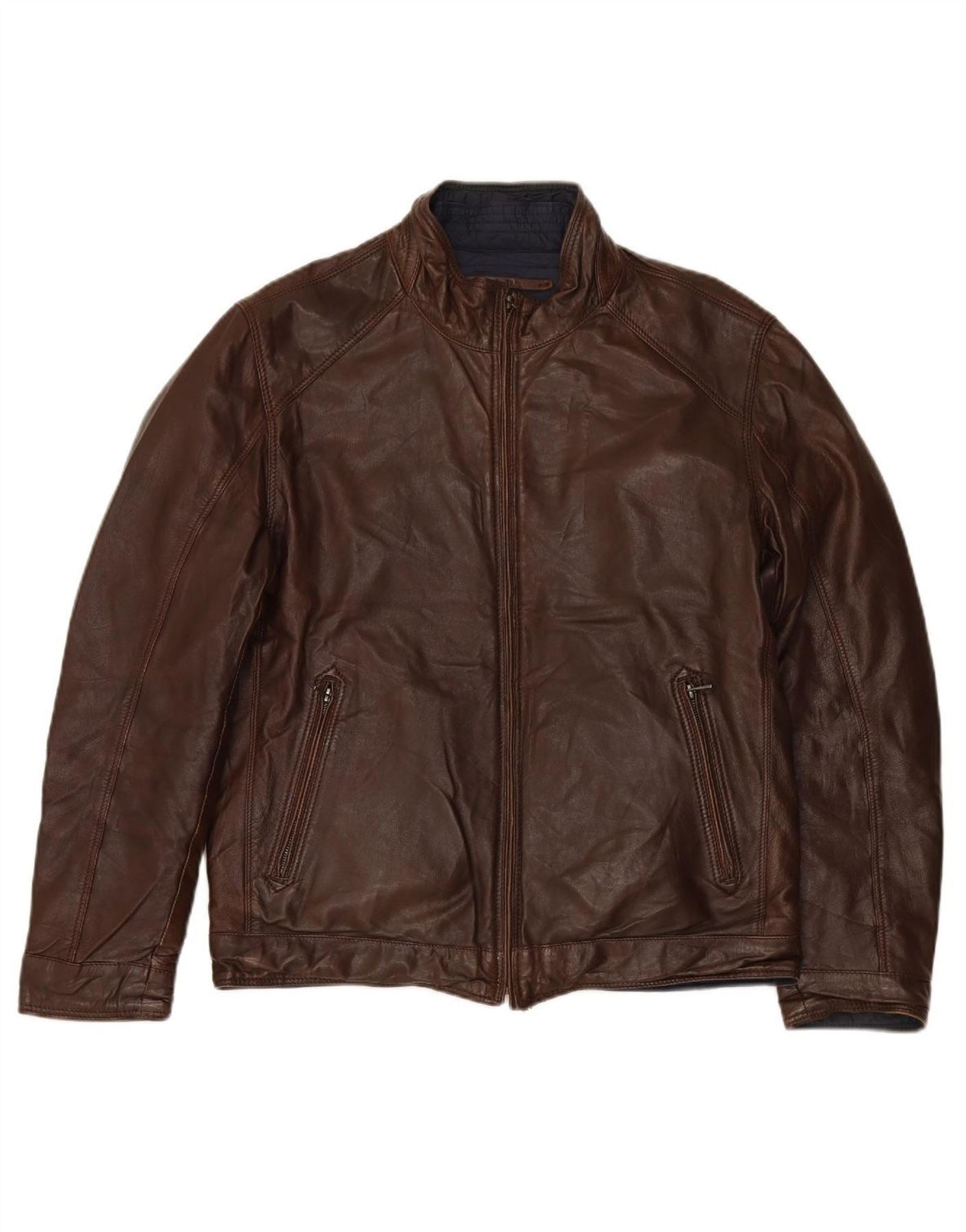 Jaqueta de couro reversível masculina MASSIMO DUTTI UK 36 pequena marrom