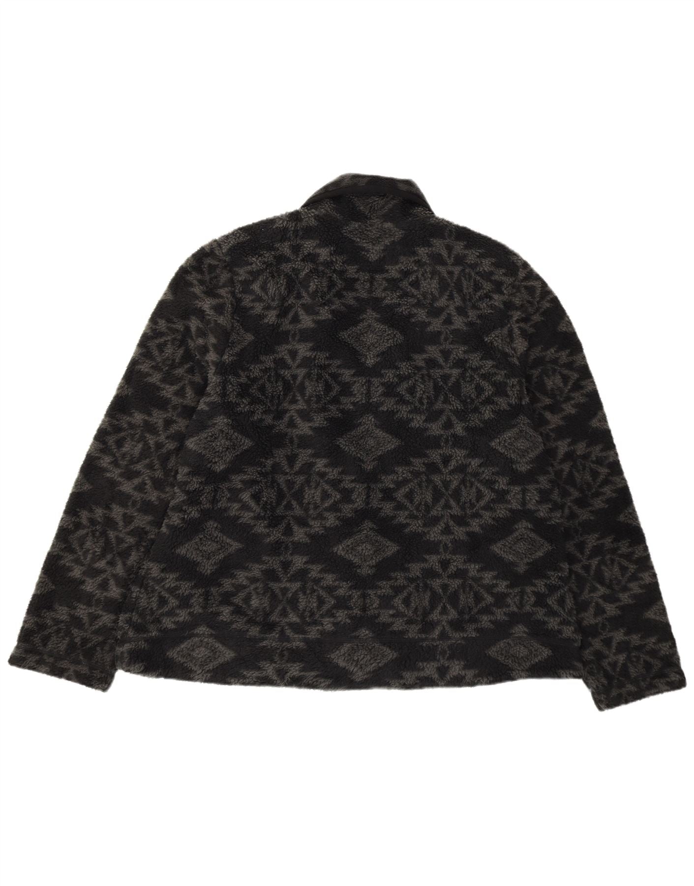 - Descrição da IA: Esta jaqueta de lã feminina Pendleton é confeccionada em lã de poliéster macio, oferecendo calor e conforto. Possui decote clássico com gola e mangas compridas. O padrão geométrico tribal em tons pretos e multicoloridos acrescenta um estilo diferenciado. A frente com botões e bolsos práticos completam o design. O ajuste regular garante um uso confortável.